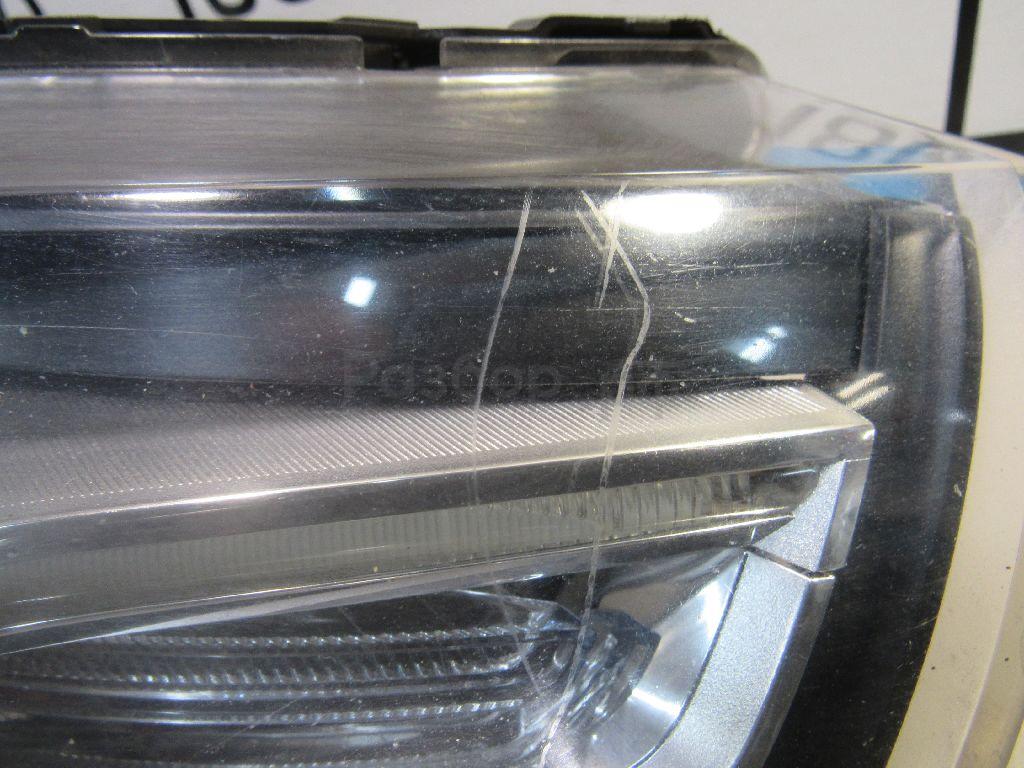 Состояние детали хорошее. Следы эксплуатации на стекле от пескоструя. Трещина корпуса снизу со стороны решётки радиатора, крепления целые. Потребуется ремонт корпуса и полировка стекла