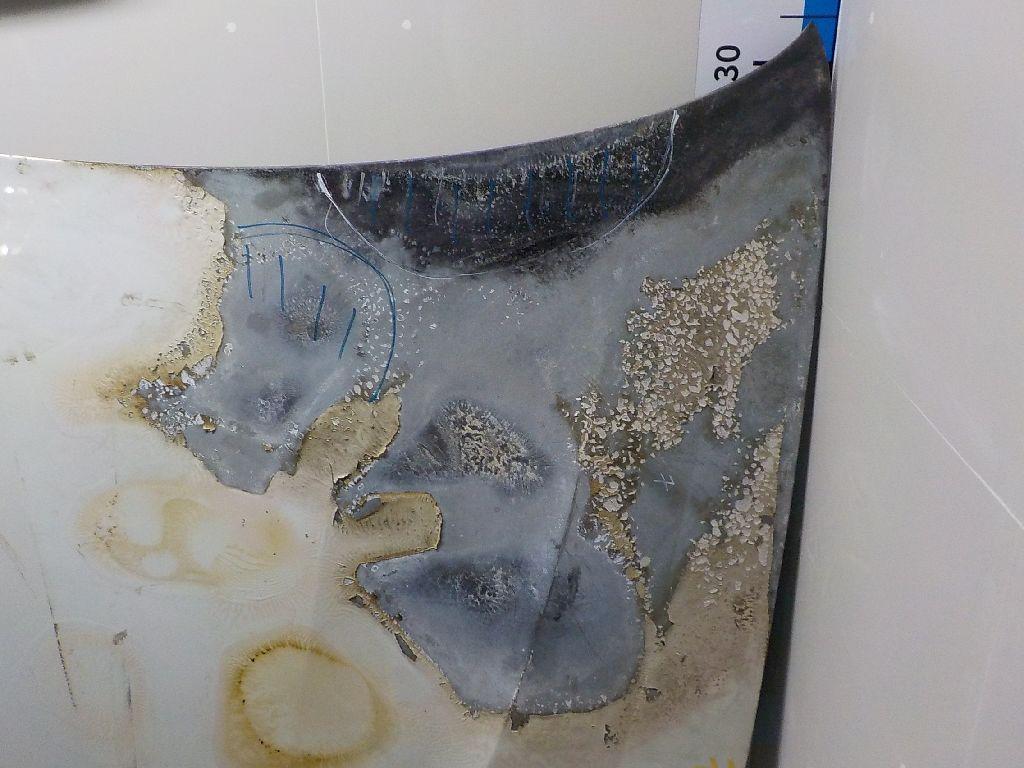Состояние детали хорошее. Чёрного цвета, потёртости, царапины. Замята кромка на уголке спереди слева, тычок на плоскости. Потребуется ремонт и покраска