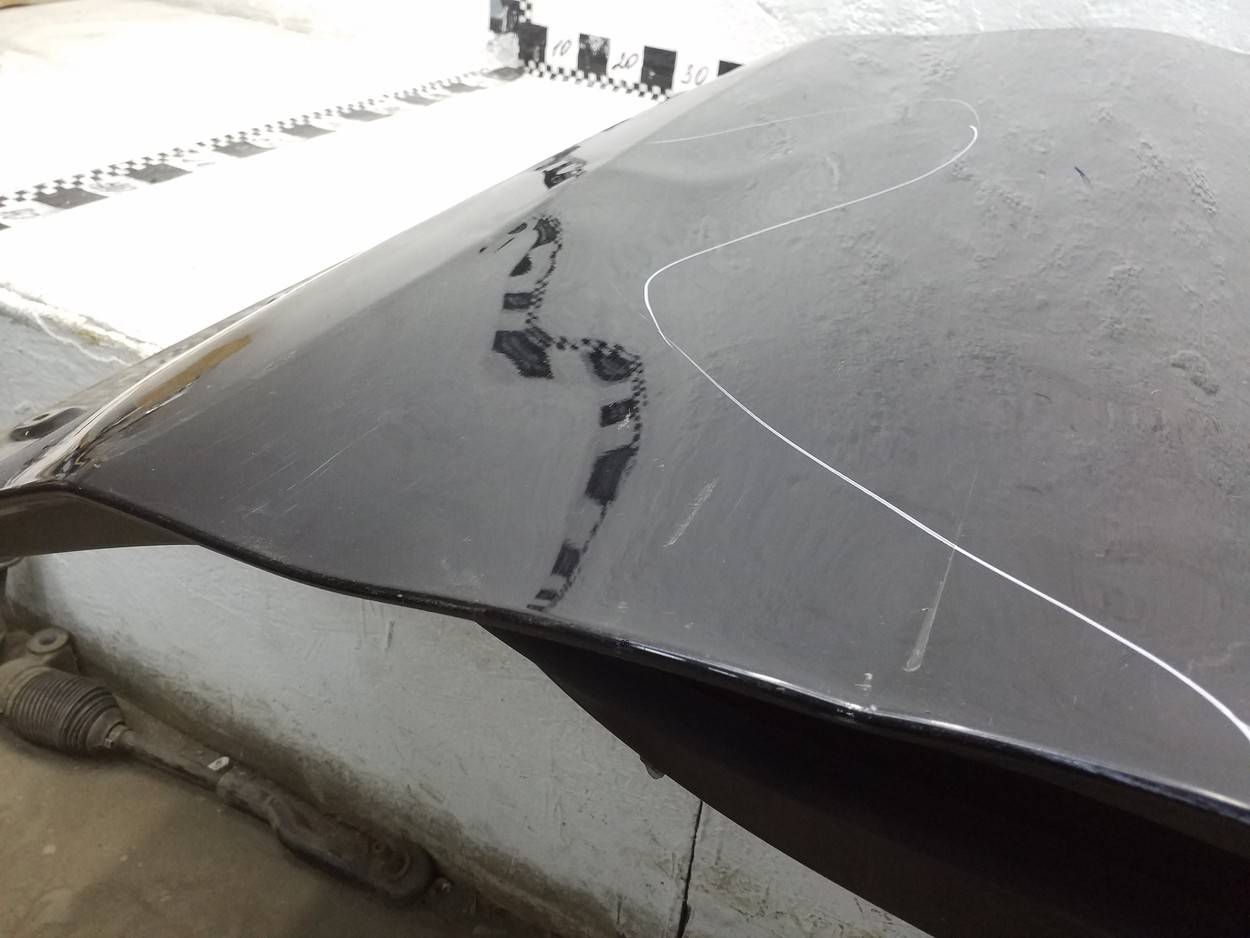 Состояние детали хорошее. Серого цвета, потёртости, царапинки. Небольшая вмятинка с притертостью в передней части в месте примыкания к бамперу. Потребуется ремонт и покраска