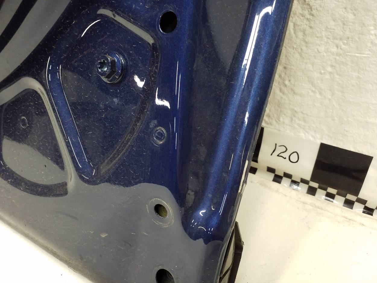 Состояние детали удовлетворительное. Синий цвет, потёртости. Вмятины в нижней части, в районе накладки. Ремонт вмятин