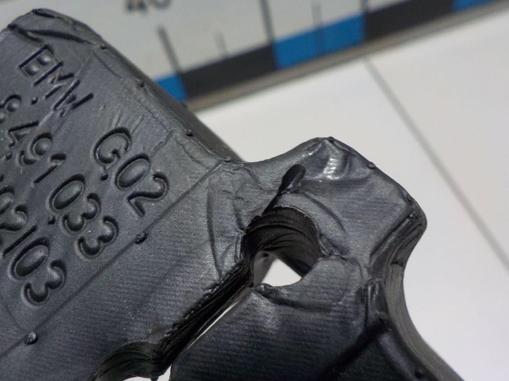 Состояние детали удовлетворительное. Чёрного цвета, потертости, царапинки. Вмятина на нижнем углу слева, деформация внутреннего каркаса в этом же месте. Потребуется ремонт и покраска