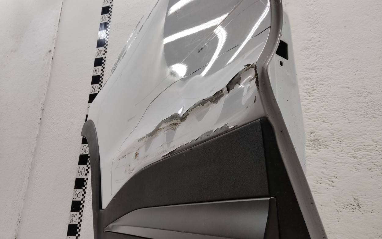 Состояние детали удовлетворительное. Белого цвета, скол ЛКП. Вмятина. Потребуется ремонт