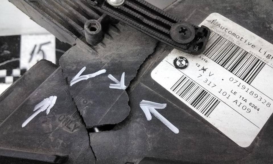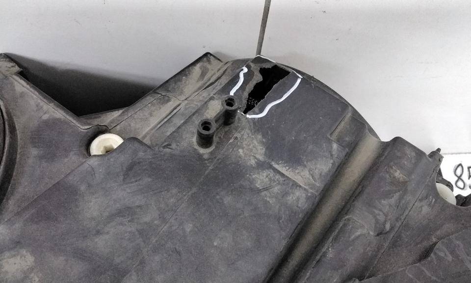 Состояние детали удовлетворительное. Стекло целое в пленке. Трещины корпуса, сломаны все крепления. Потребуется ремонт или замена корпуса