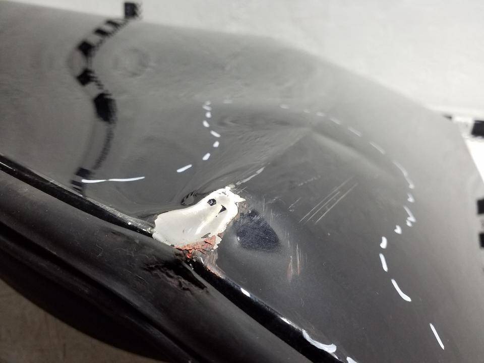 Состояние детали удовлетворительное. Цвет чёрный. Следы эксплуатации, царапины и потёртости. Вмятины. Тычки. Сломано крепление.. Вмятина справа внизу. Тычок по центру справа. Два тычка по центру слева. Тычок по центру внизу. Сломано крепление с вмятиной справа внизу.. Требуется ремонт.