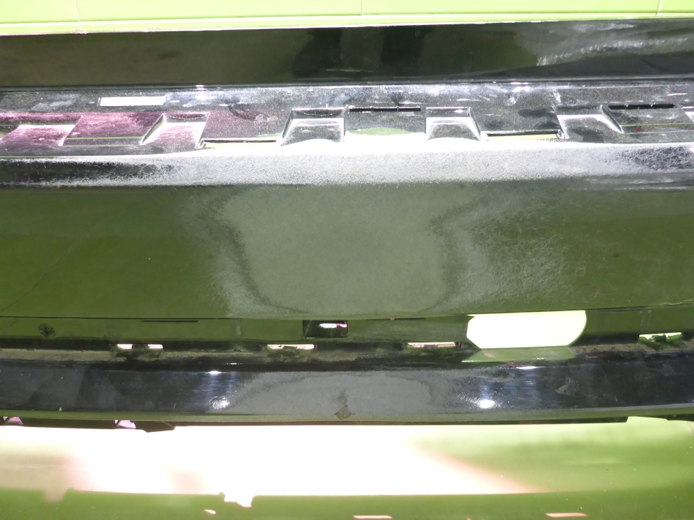 Состояние детали хорошее. Цвет черный. Царапины и потёртости, следы эксплуатации. Вмятина. Тычки.. Вмятина по центру внизу. Два тычка справа внизу. Тычок по центру.. Требуется ремонт.