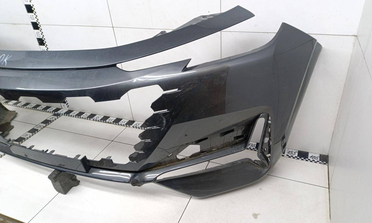 Состояние детали хорошее. Серого цвета, потёртости, царапинки. Сломано два крепления ДХО справа, основные крепления бампера целые, трещина пластика бампера снизу под ДХО. Потребуется ремонт и покраска