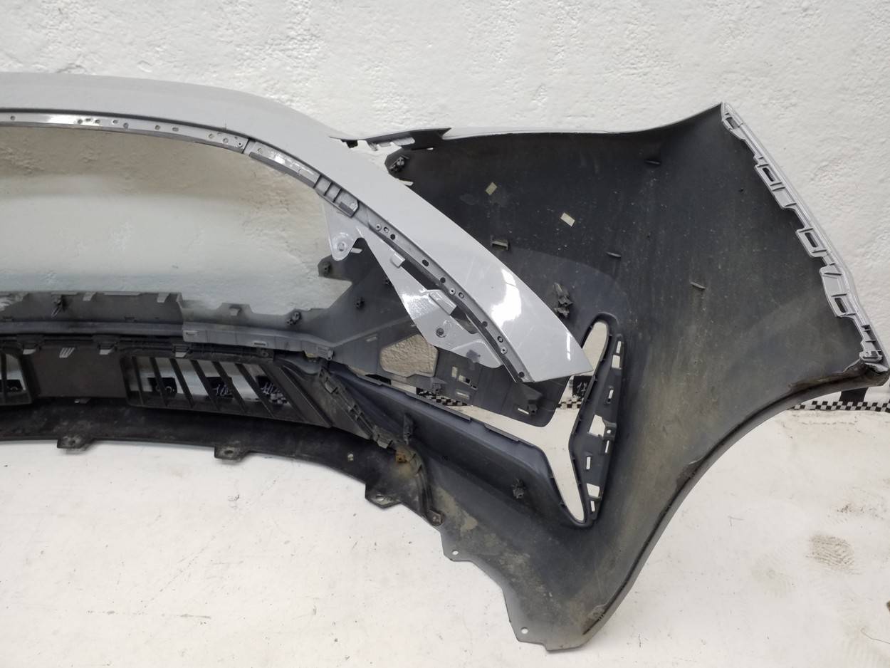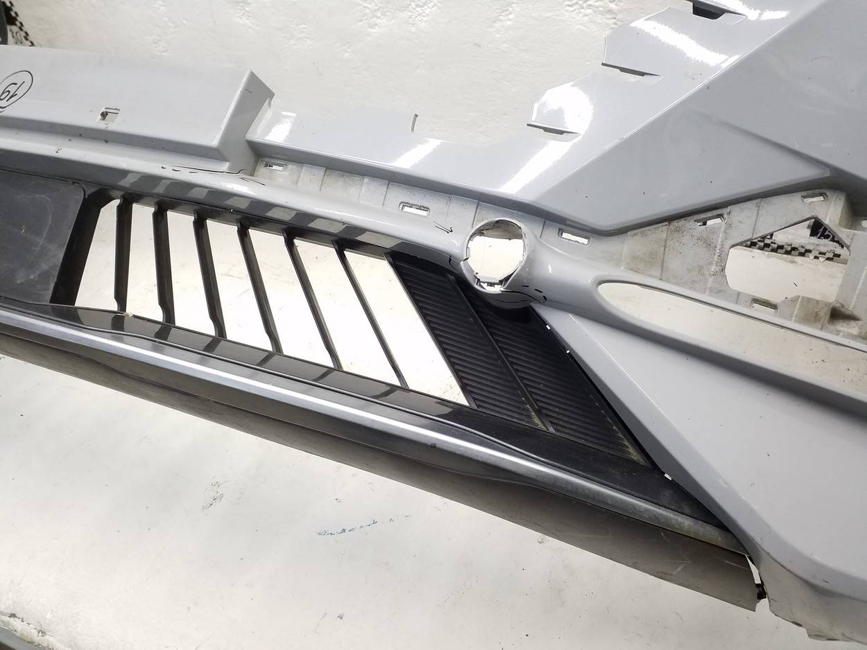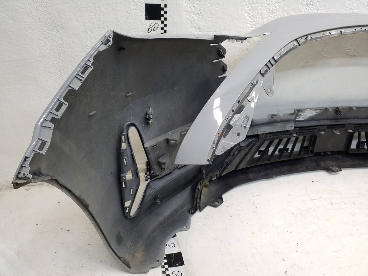 Состояние детали хорошее. Серого цвета, потёртости, царапинки. Сломано два крепления ДХО справа, основные крепления бампера целые, трещина пластика бампера снизу под ДХО. Потребуется ремонт и покраска
