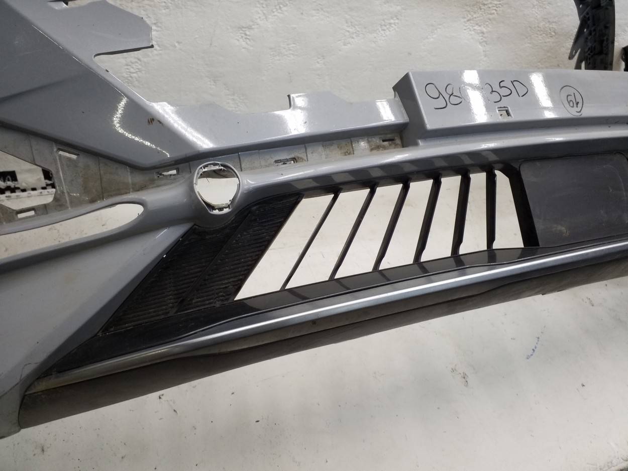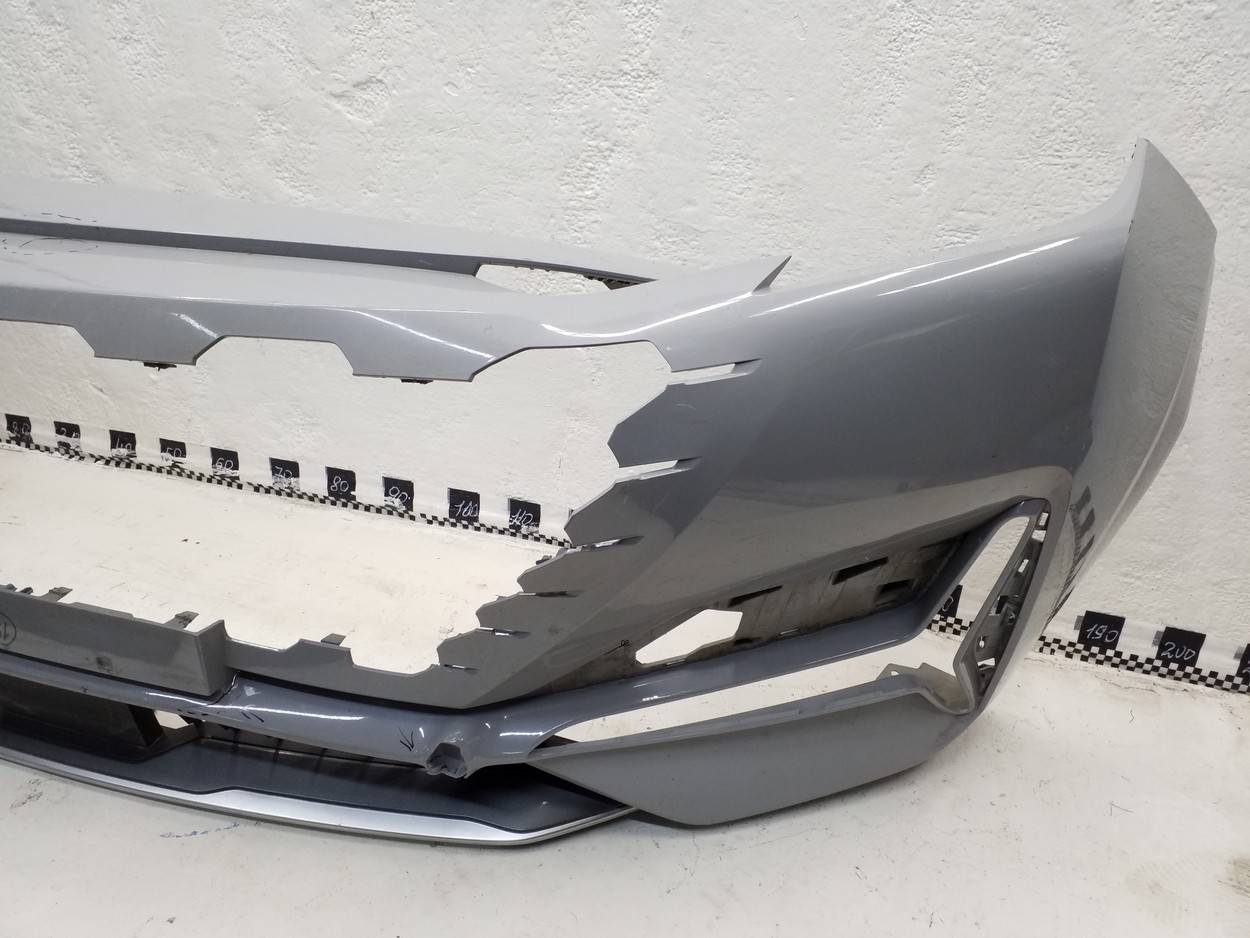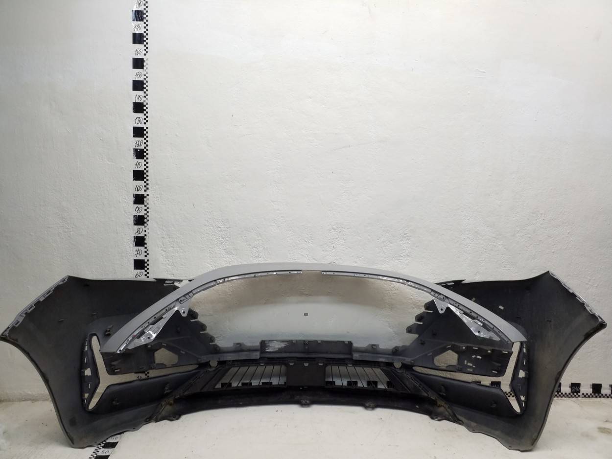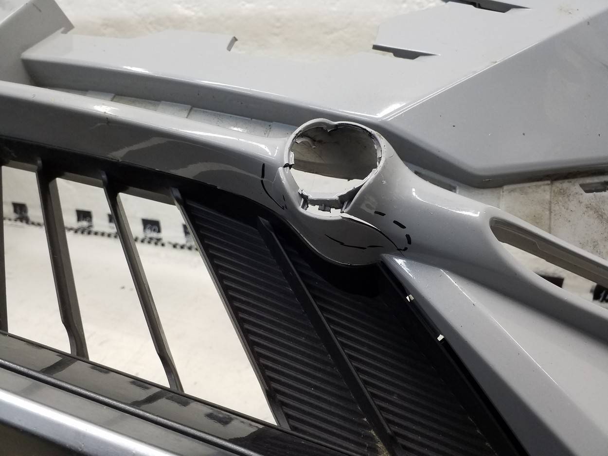 Состояние детали хорошее. Серого цвета, потёртости, царапинки. Сломано два крепления ДХО справа, основные крепления бампера целые, трещина пластика бампера снизу под ДХО. Потребуется ремонт и покраска