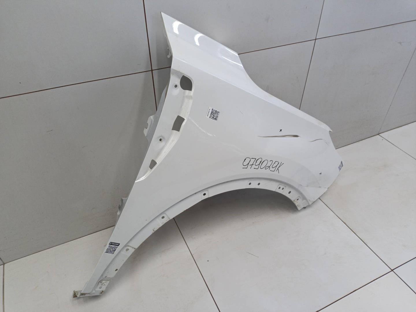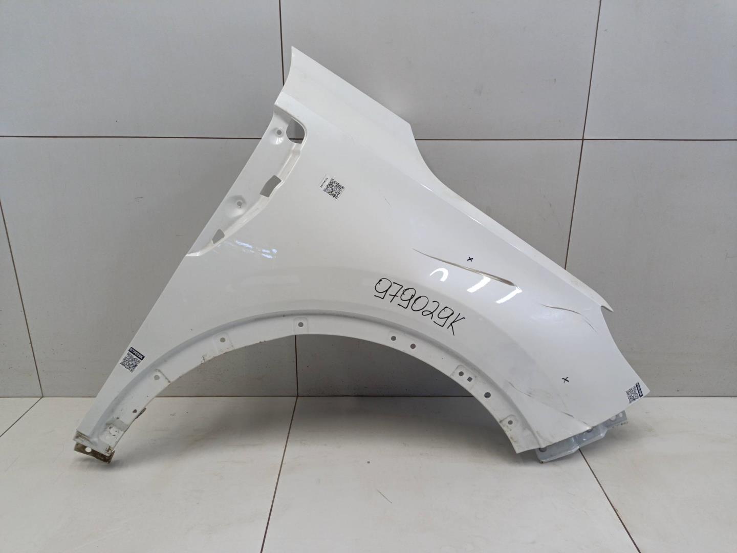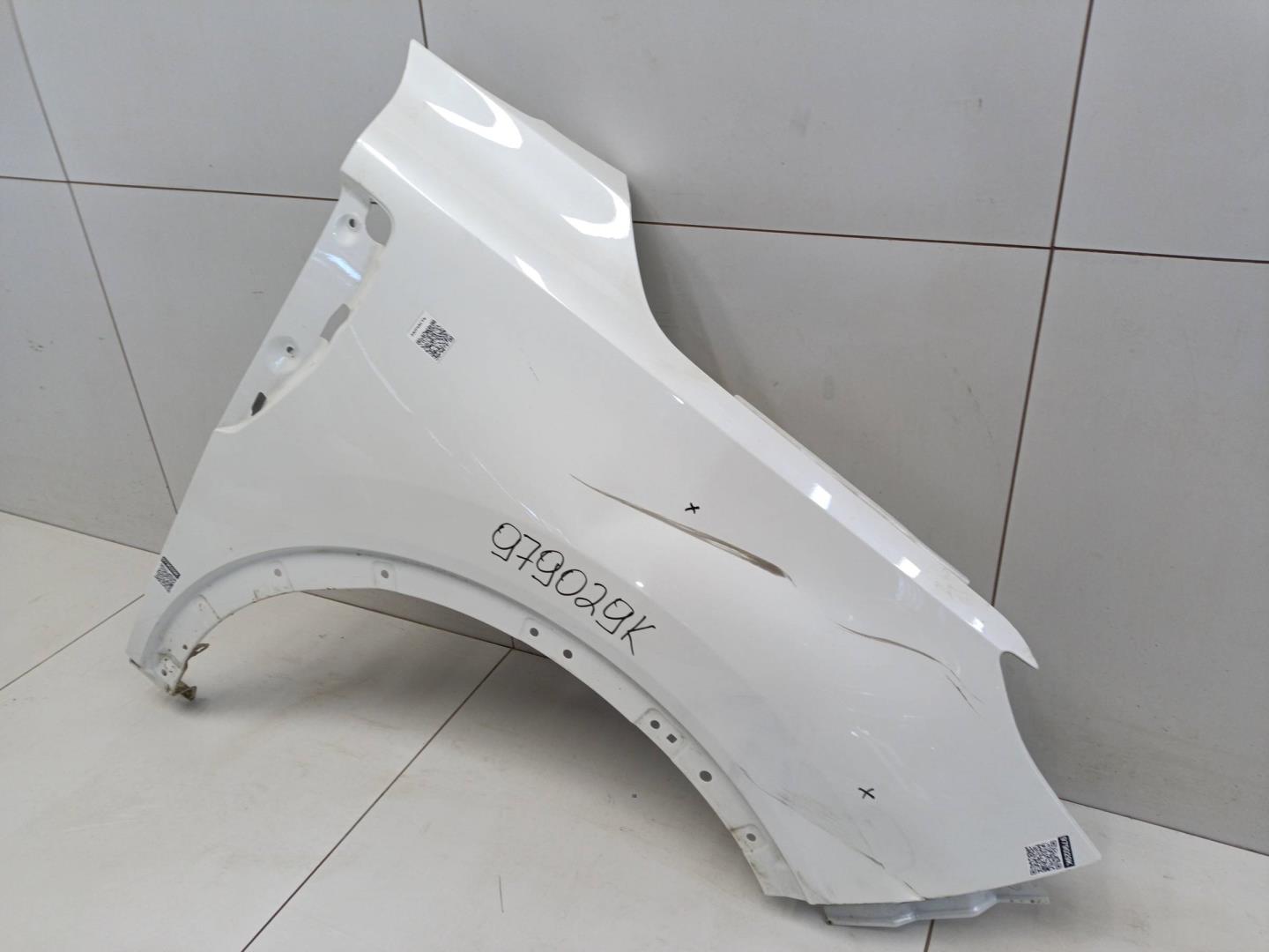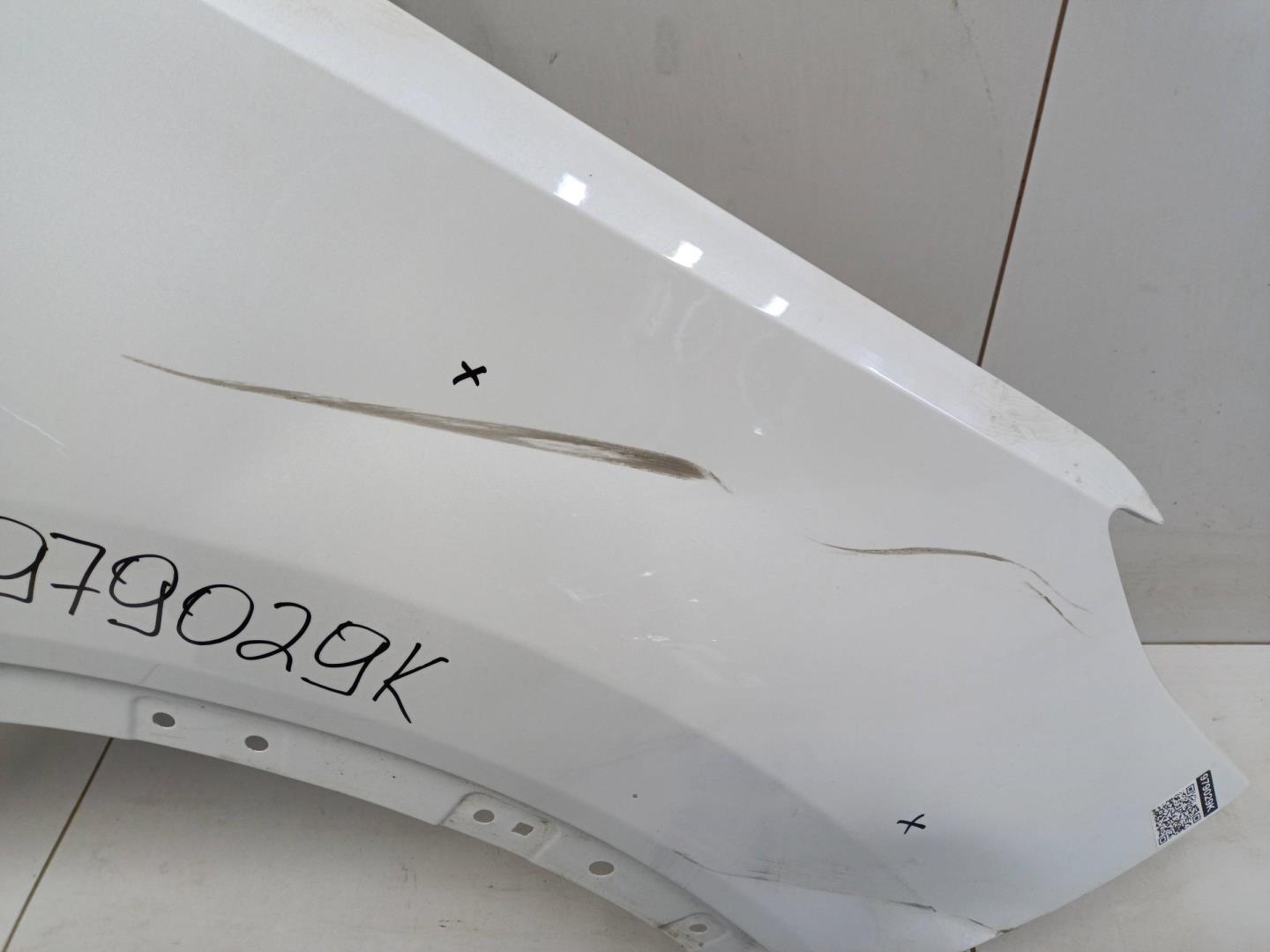 Состояние детали удовлетворительное. Следы эксплуатации , цвет белый. Царапины и потёртости, вмятина в передней части крыла, продольная вмятина в центре крыла. Потребуется ремонт