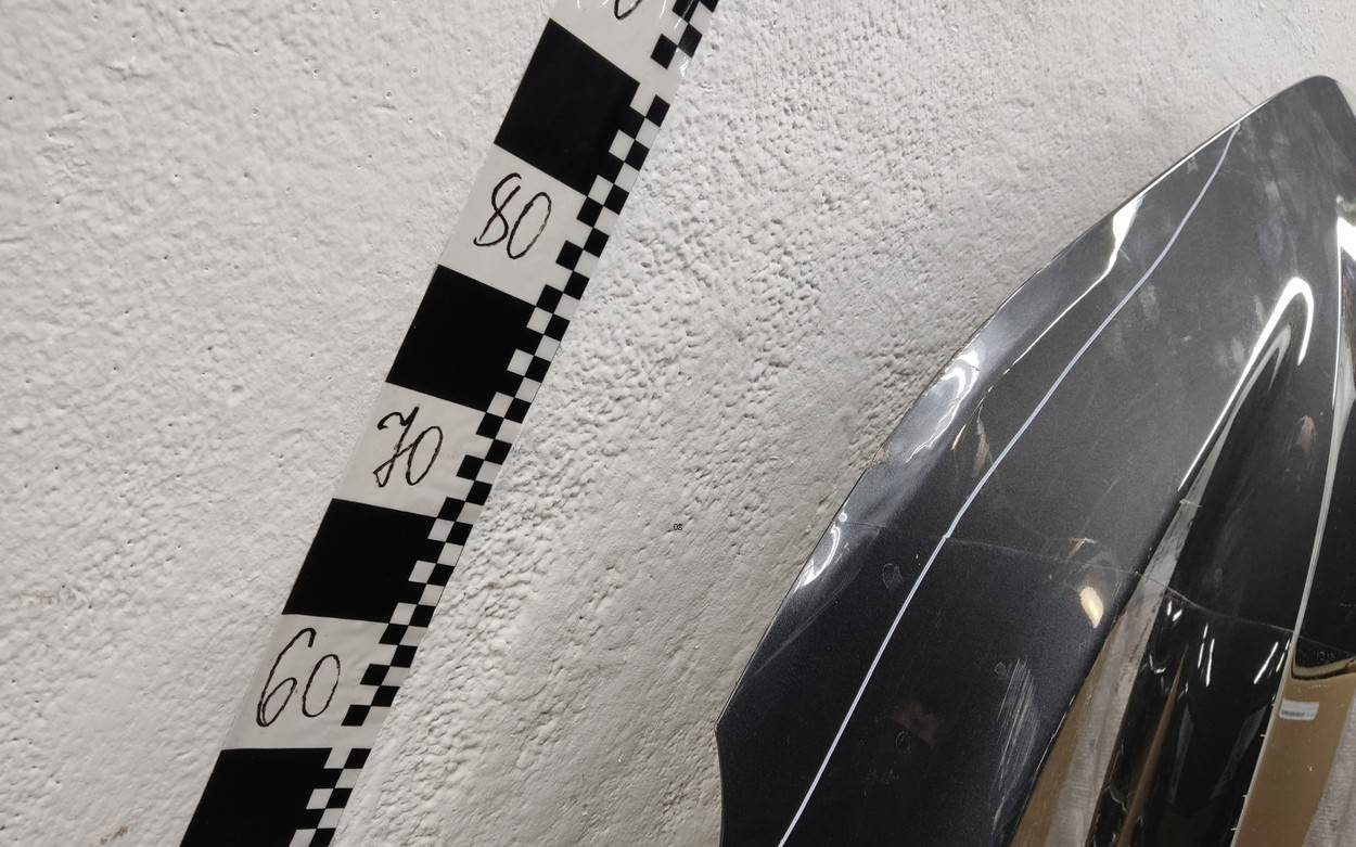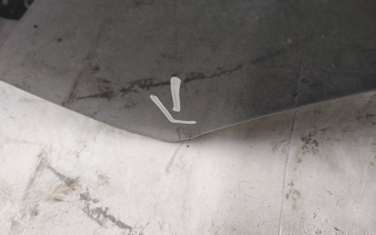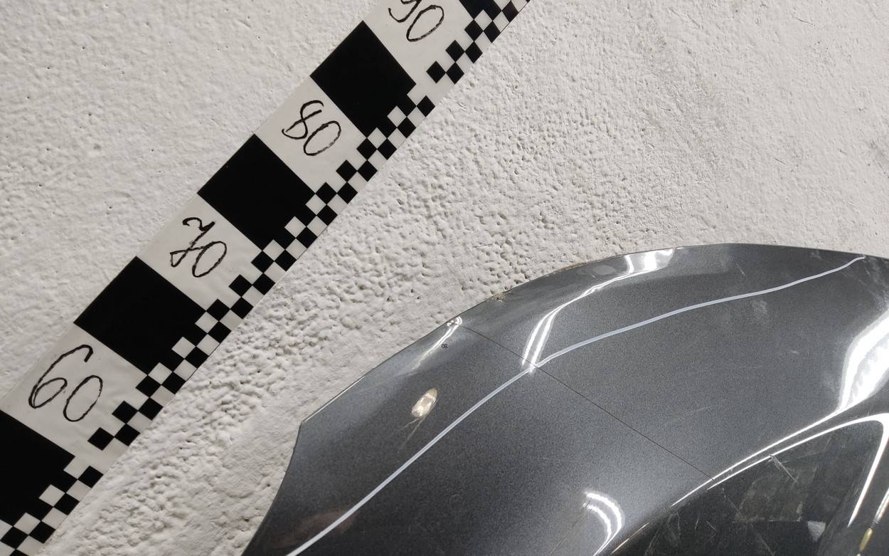 Состояние детали хорошее. Серого цвета, скол ЛКП. В плёнке. Небольшие вмятины на плоскости, погнута кромка и уголок. Потребуется ремонт