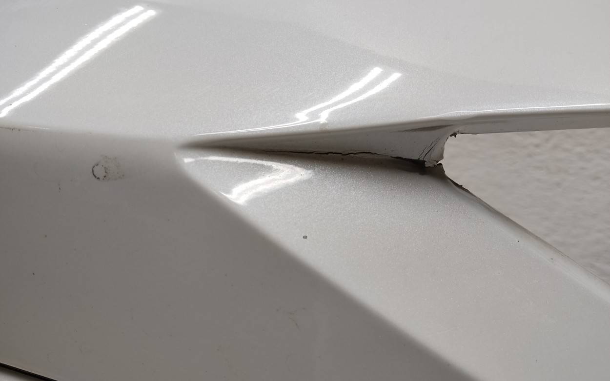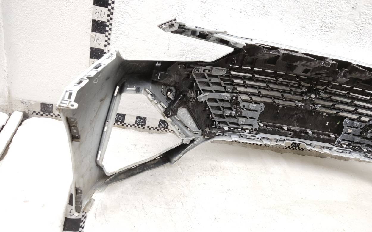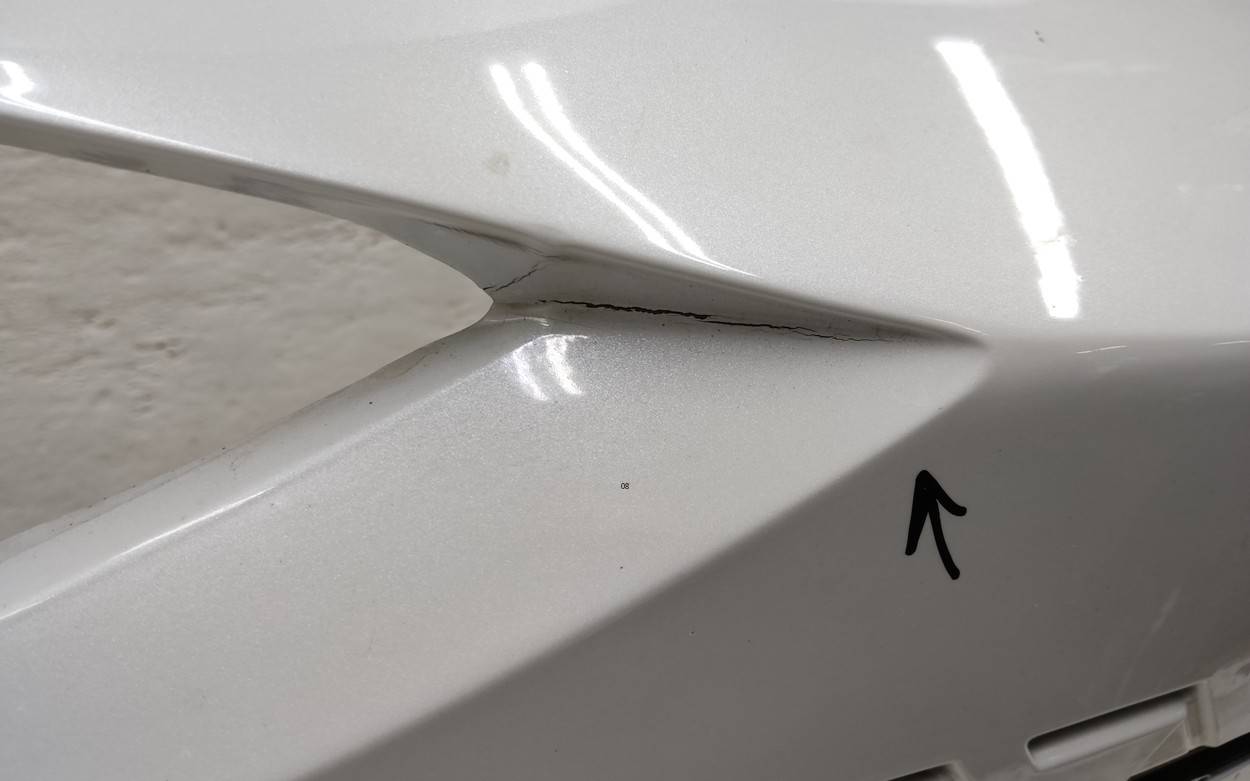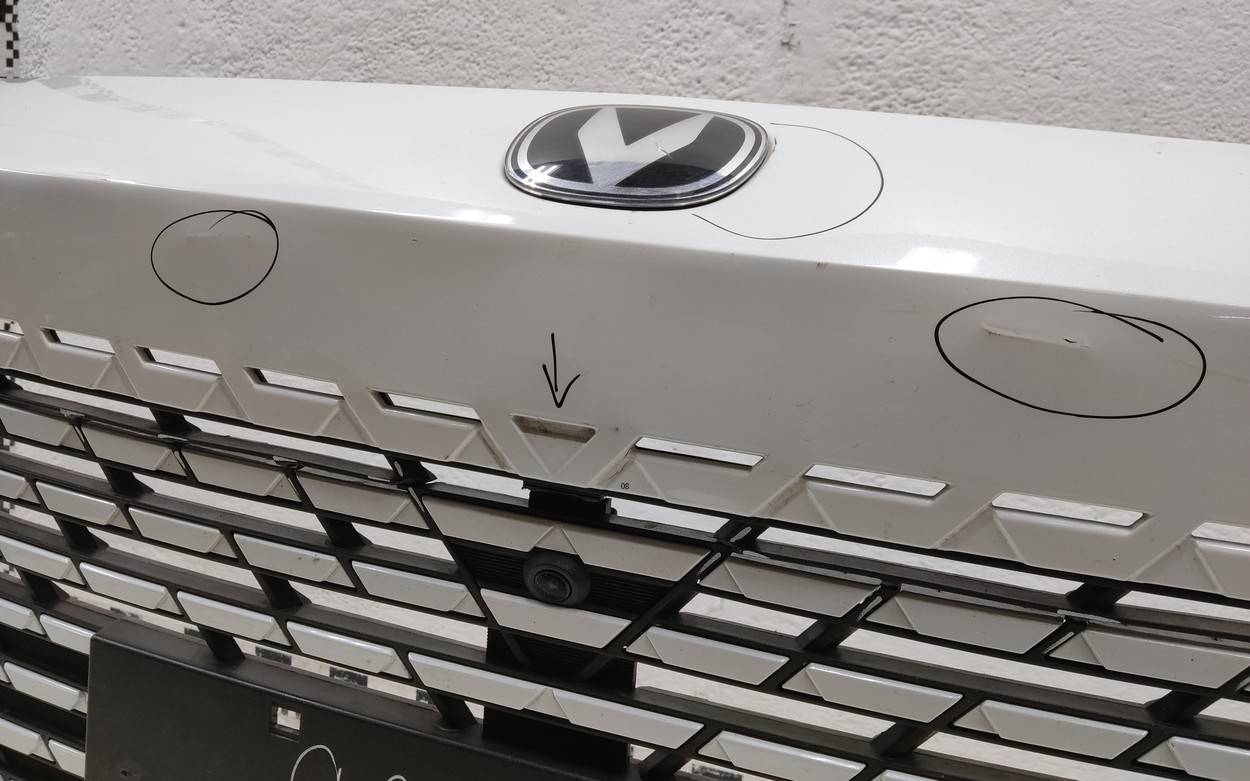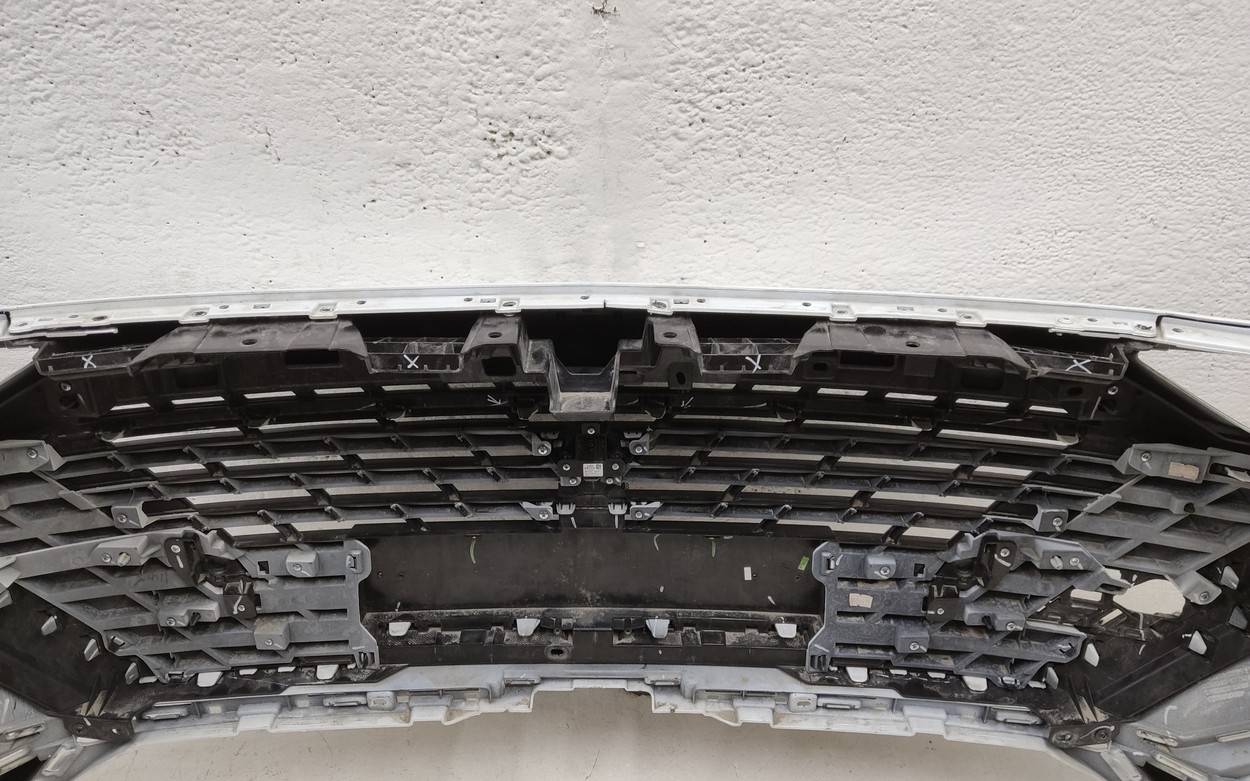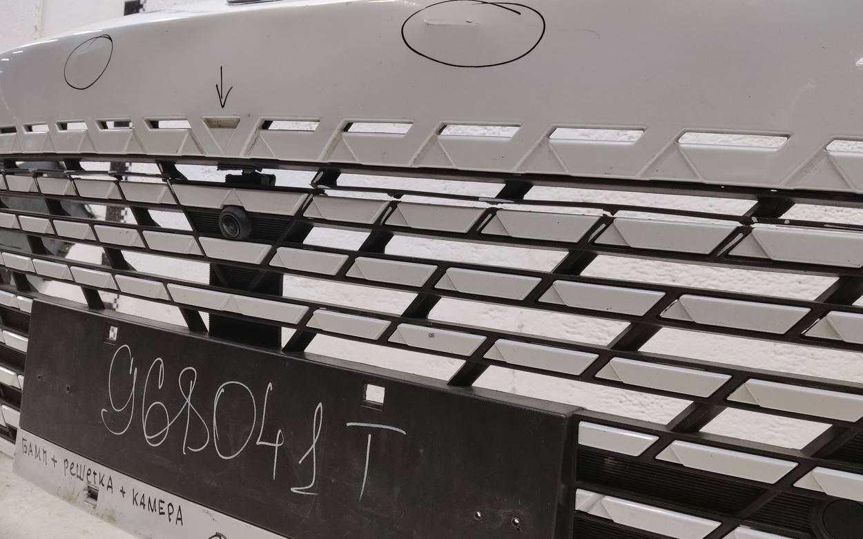 Состояние детали хорошее. Белого цвета под парктроники. С камерой. Вмятинки, небольшие трещины на бампере и решетке. Отсутствуют четыре верхних кронштейна на решетке, дефе нижнего правого крепления на бампере. Потребуется незначительный ремонт