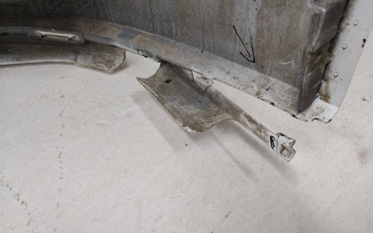 Состояние детали удовлетворительное. Серого цвета, потертости. Трещина на креплении слева. Потребуется ремонт и покраска