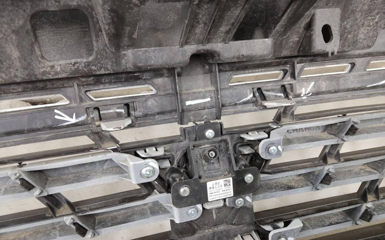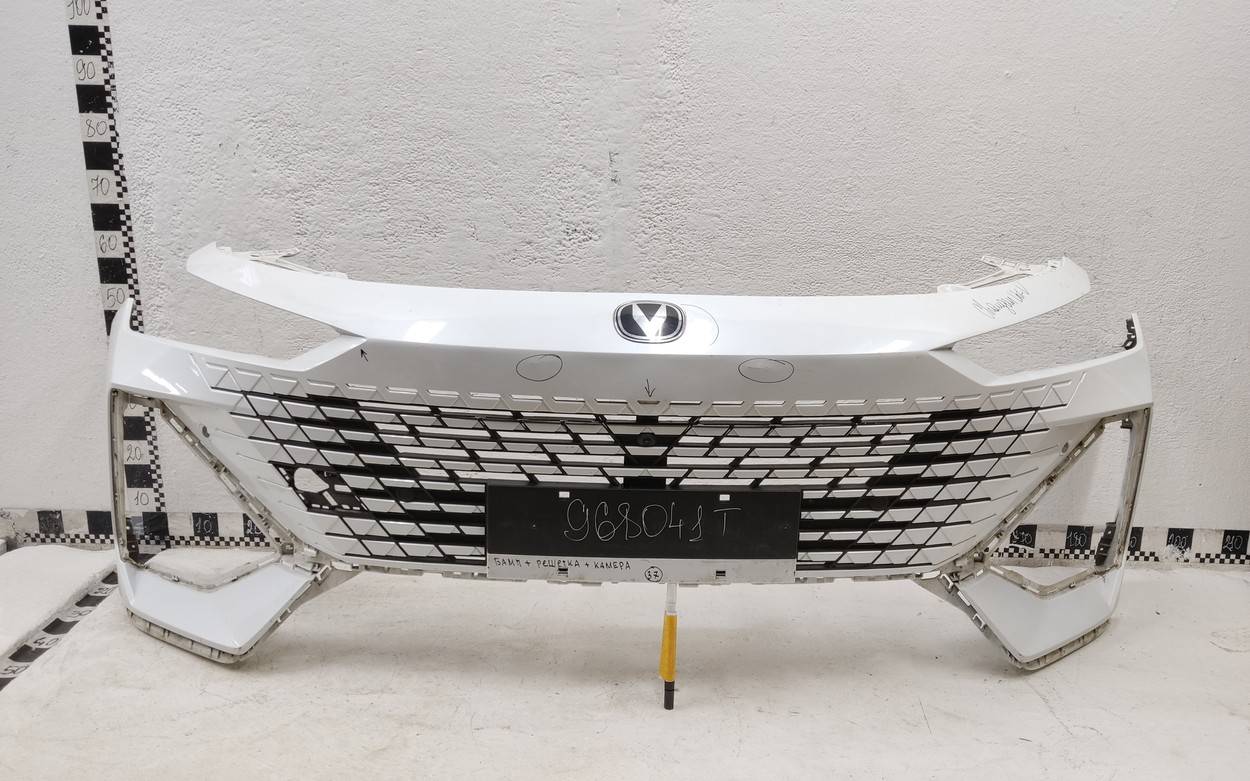 Состояние детали хорошее. Белого цвета под парктроники. С камерой. Вмятинки, небольшие трещины на бампере и решетке. Отсутствуют четыре верхних кронштейна на решетке, дефе нижнего правого крепления на бампере. Потребуется незначительный ремонт Бампер передний для Changan Uni-V 2021>