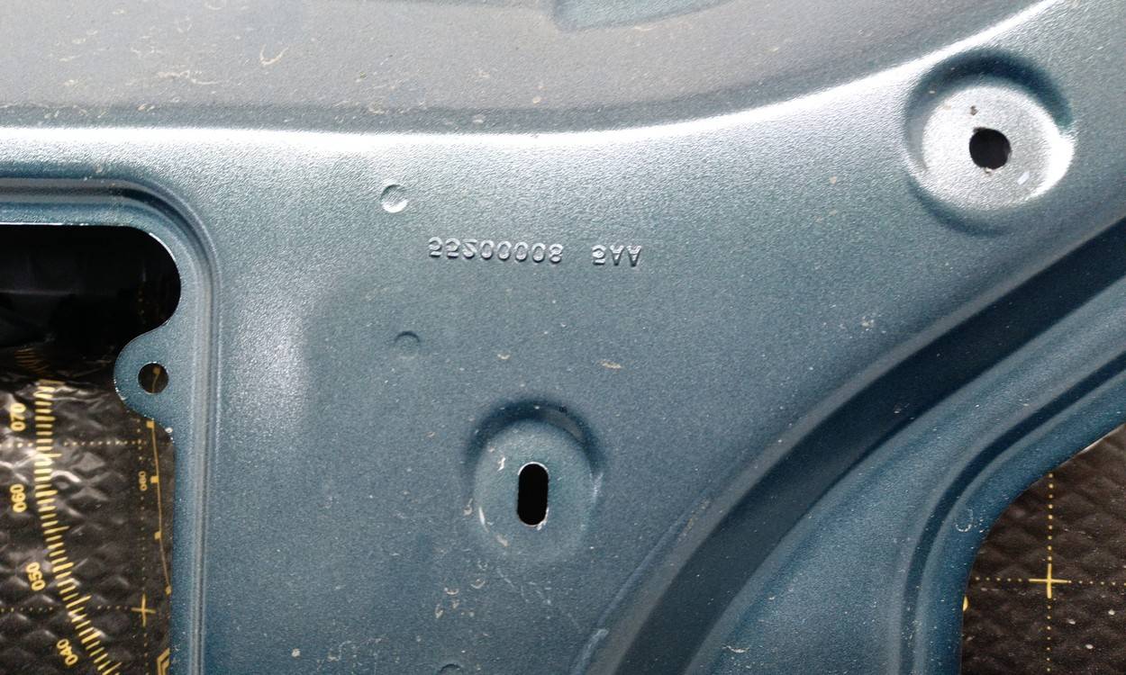 Состояние детали удовлетворительное. Синего цвета в пленке, есть небольшой надрыв пленки. Вмятинки на плоскости и ребре. Потребуется ремонт и покраска
