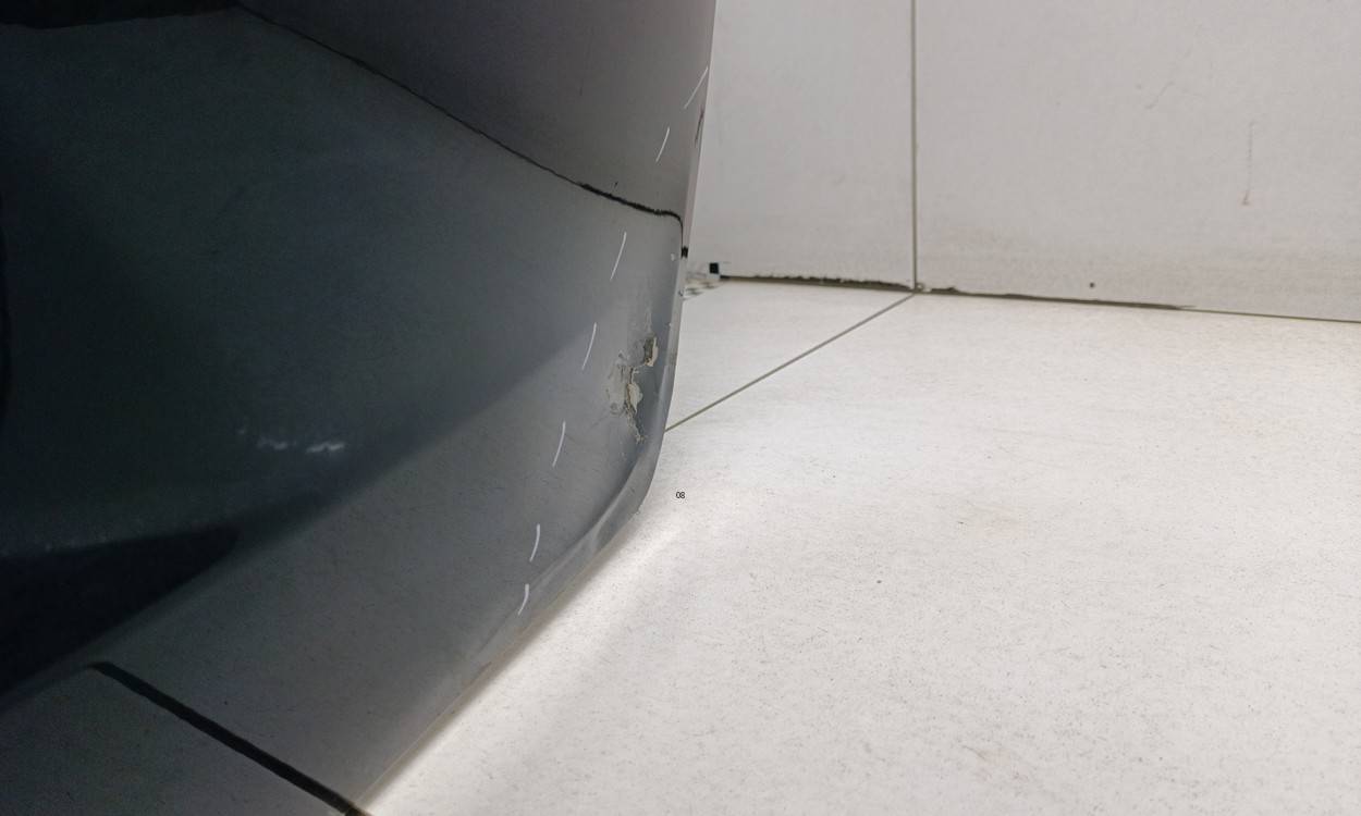 Состояние детали хорошее. Цвет синий. Следы эксплуатации, потертости, царапины. Трещина. Сломаны крепления. Юбка: 602000357AA. Сломаны крепления на юбке.. Сломано крепление слева внизу. Сломано крепление справа внизу. Сломано крепление слева вверху. Трещина справа вверху. На юбке: сломаны три крепления справа по центру.. Требуется ремонт.