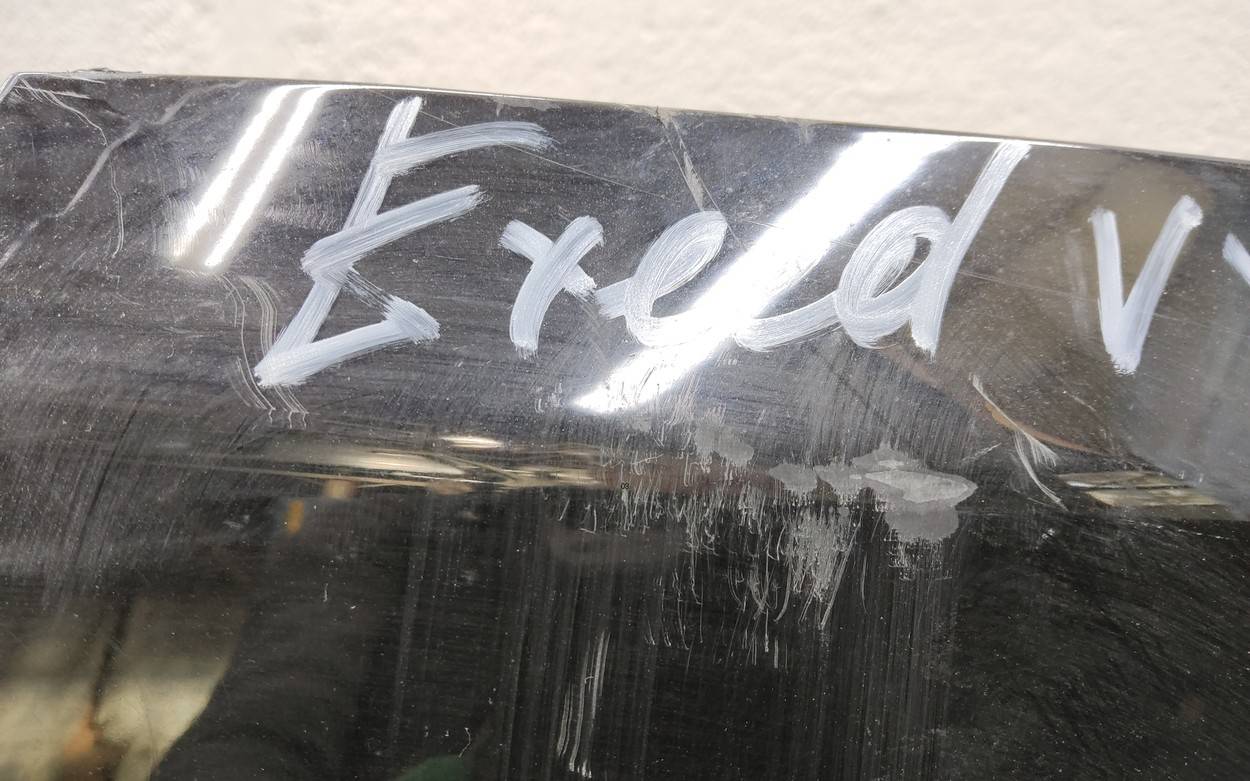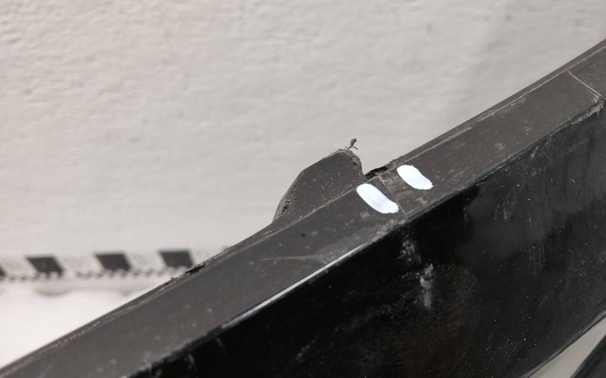 Состояние детали удовлетворительное. Черного цвета, потертости, царапины. Вмятинки в верхней части у лобового стекла. Потребуется ремонт и покраска