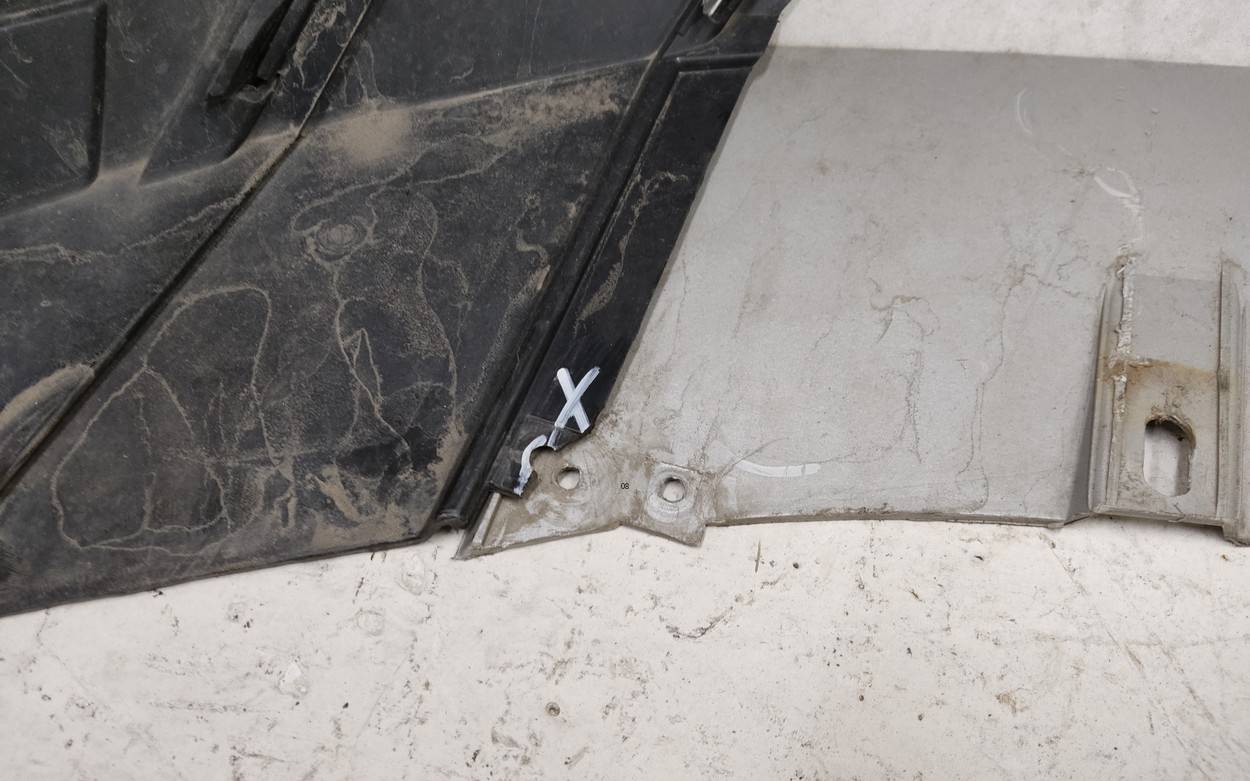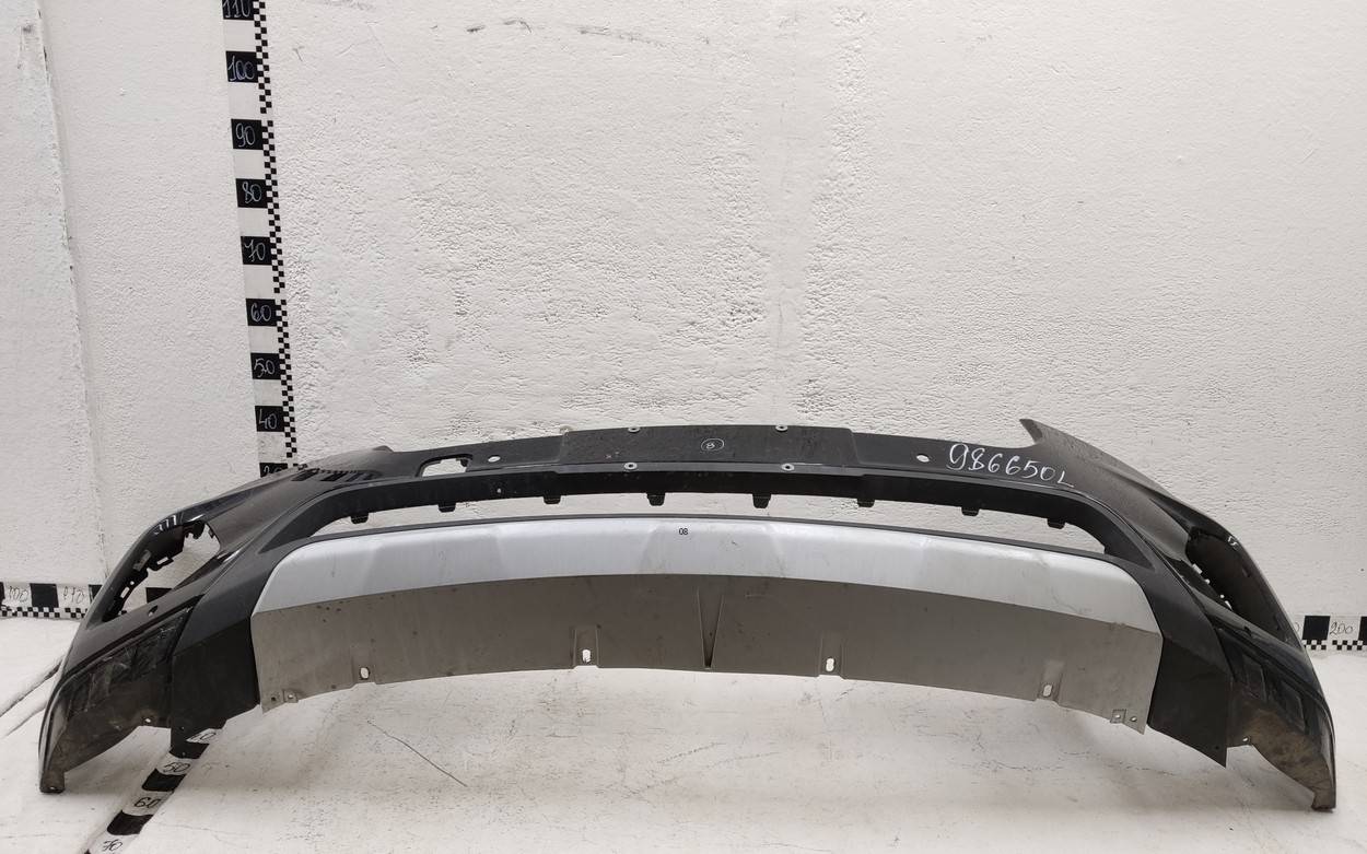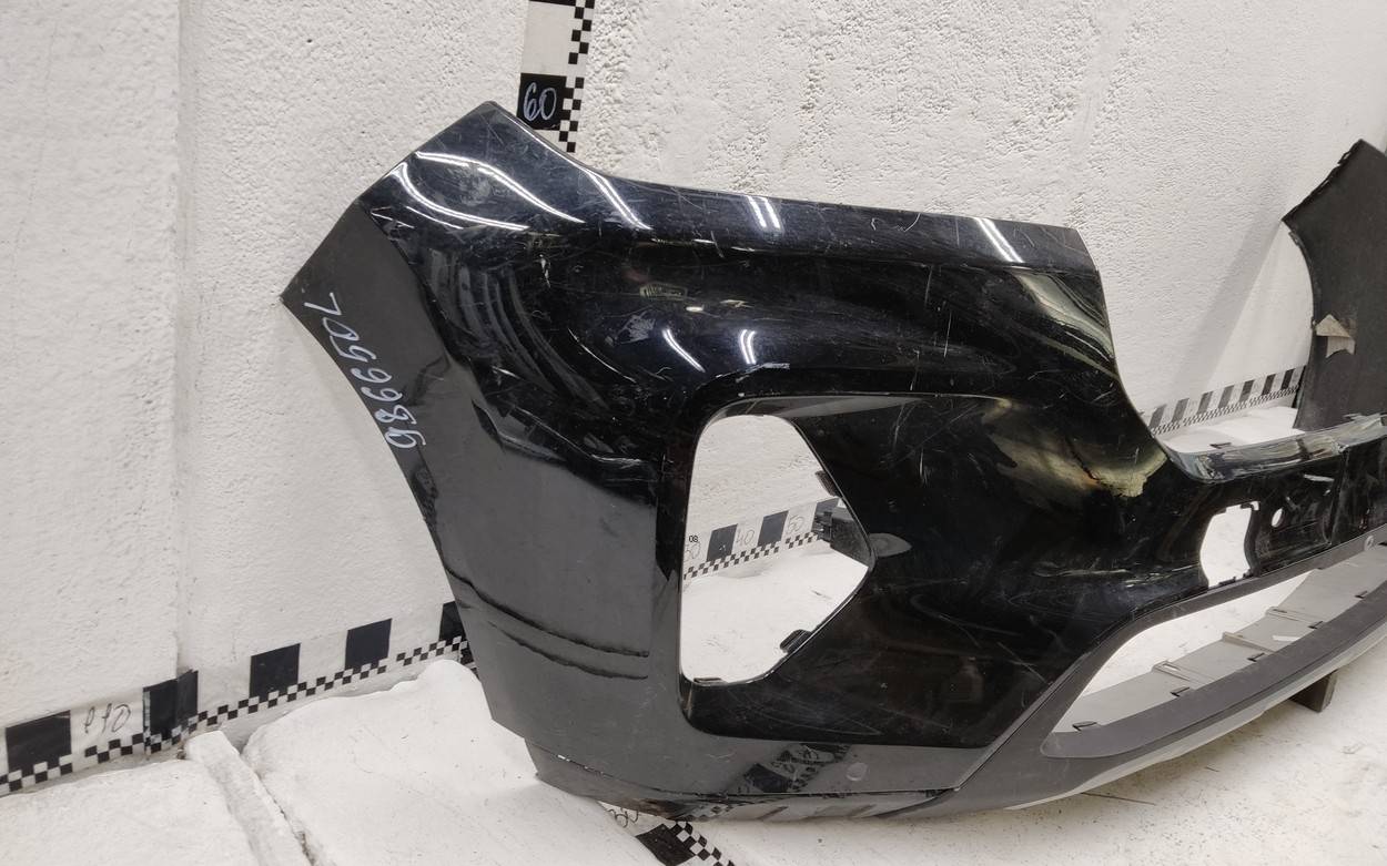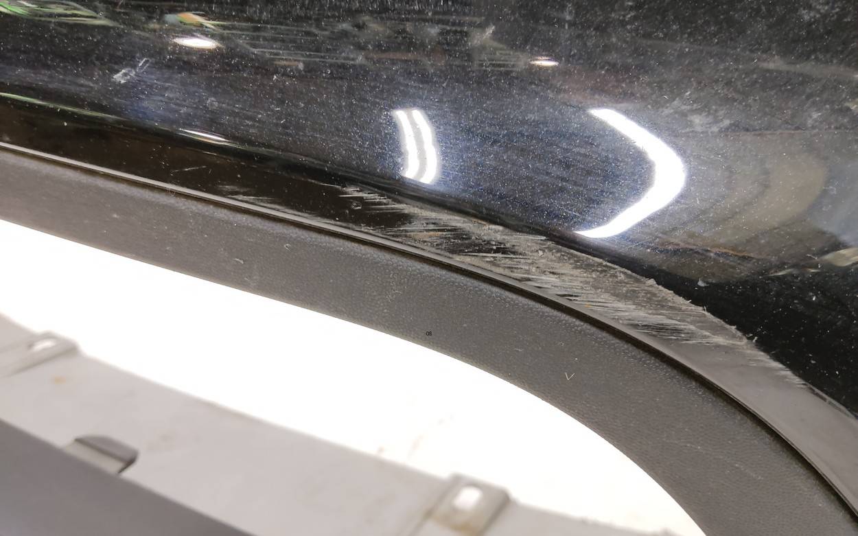Состояние детали хорошее. Тёмно-синего цвета под парктроники. Потёртости. Сломано два крепления, отсутствует одно под левую ПТФ, дефект трех на фото. Потребуется незначительный ремонт