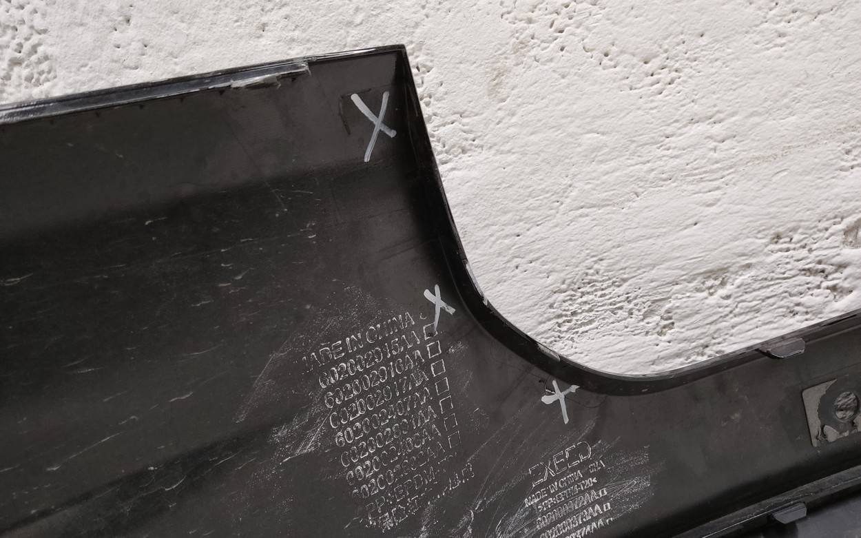 Состояние детали хорошее. Цвет синий. Следы эксплуатации, потертости, царапины. Трещина. Сломаны крепления. Юбка: 602000357AA. Сломаны крепления на юбке.. Сломано крепление слева внизу. Сломано крепление справа внизу. Сломано крепление слева вверху. Трещина справа вверху. На юбке: сломаны три крепления справа по центру.. Требуется ремонт.