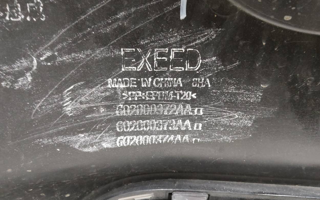 Состояние детали хорошее. Чёрного цвета царапинки. Небольшой дефект пластика по верхней кромке слева. Отсутствуют три крепления под верхнюю решетку и одно под накладку. Одно верхнее левое крепление лопнуло. Потребуется незначительный ремонт Бампер передний для Chery Exceed VX 2021>