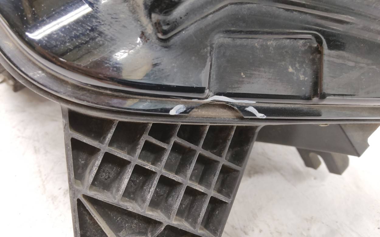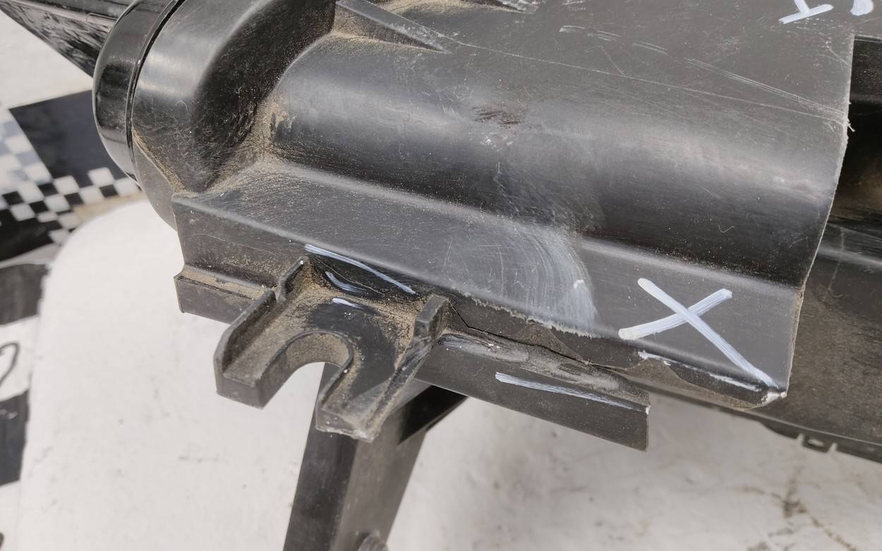 Состояние детали плохое. Следы эксплуатации, потёртости. Трещины, отсутствует небольшой фрагмент корпуса, в районе крепления номерного знака, крепления целые. Ремонт корпуса