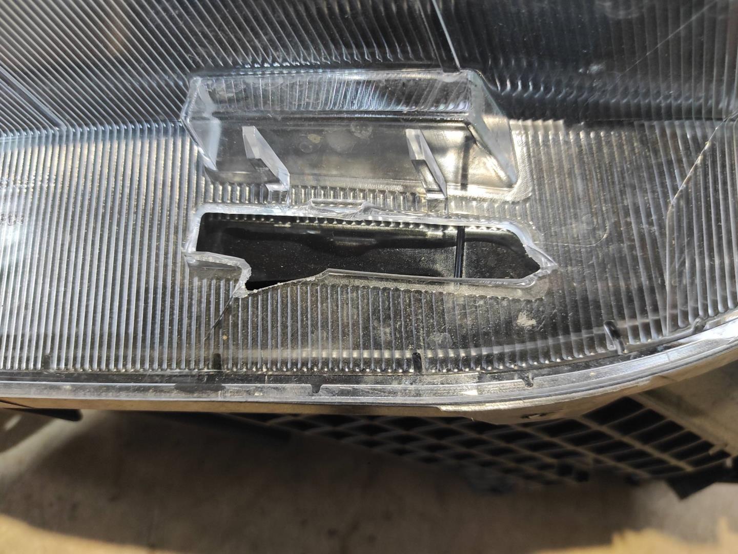 Состояние детали удовлетворительное. Следы эксплуатации на стекле, притёртость со стороны решётки радиатора. Дефект корпуса, сломано два крепления со стороны решётки радиатора, внутреннее повреждение фары сломан корректор. Потребуется ремонт корпуса и корректора, полировка стекла