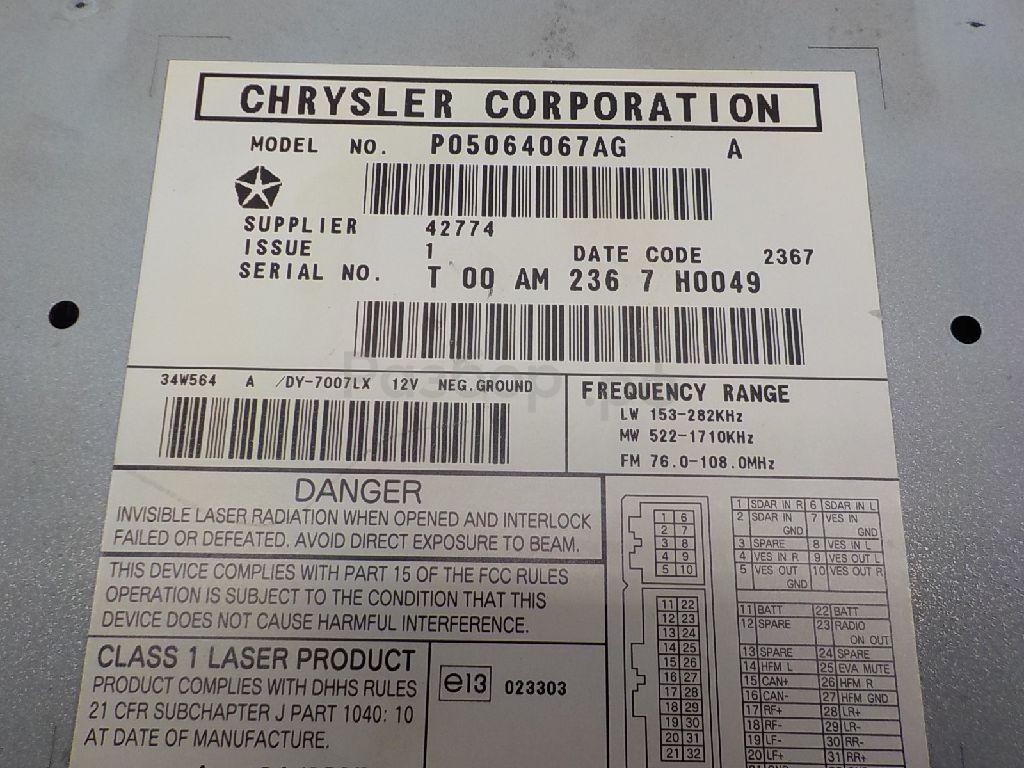 ПО ЗАПРОСУ ПОКАЖЕМ СОСТОЯНИЕ ЗАПЧАСТИ ПО ВИДЕО 5091509AG Магнитола для Chrysler PT Cruiser 2000-2010