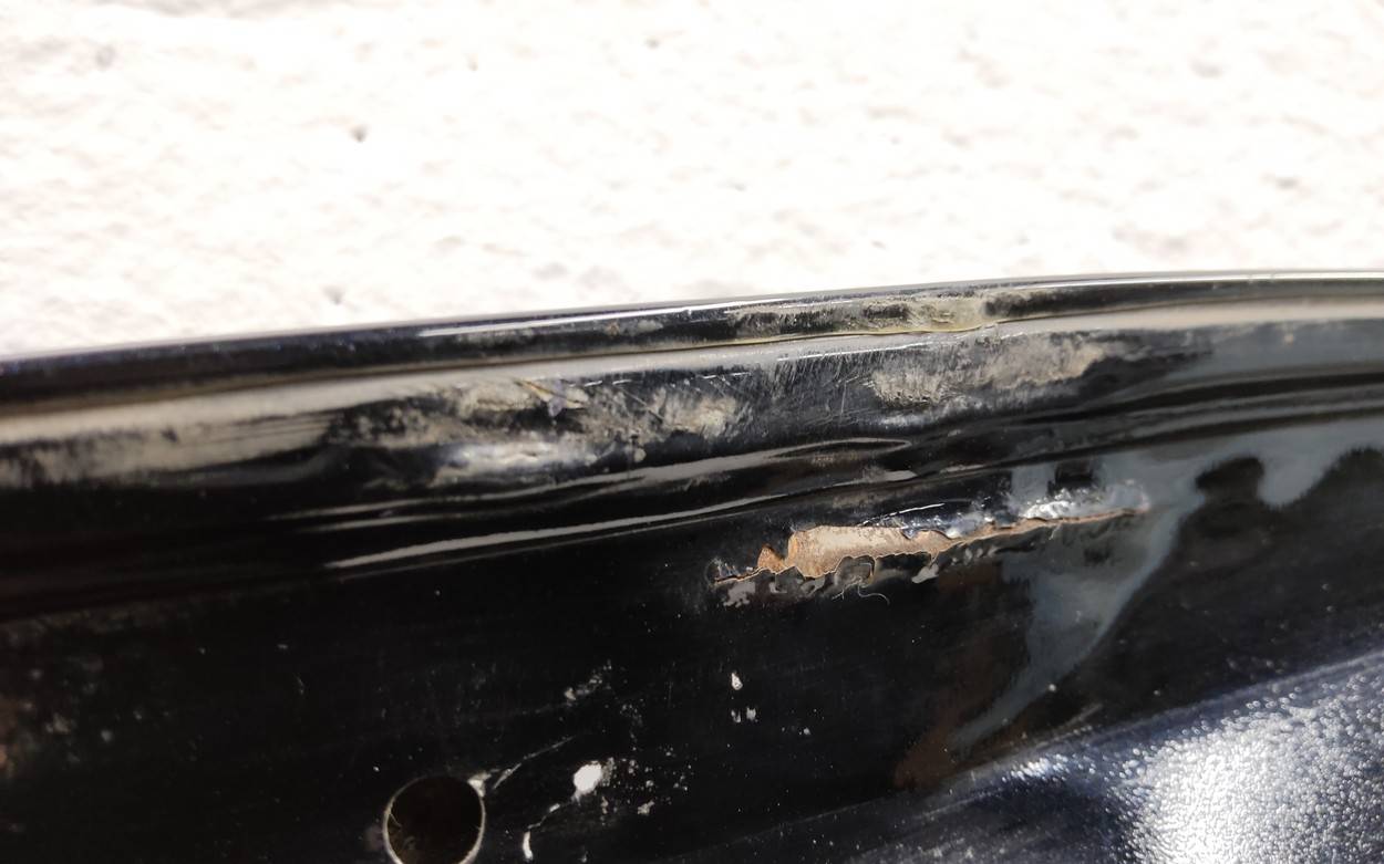 Состояние детали удовлетворительное. Чёрного цвета в плёнке, скол ЛКП. Вмятины на внешней и внутренней поверхности. Потребуется ремонт