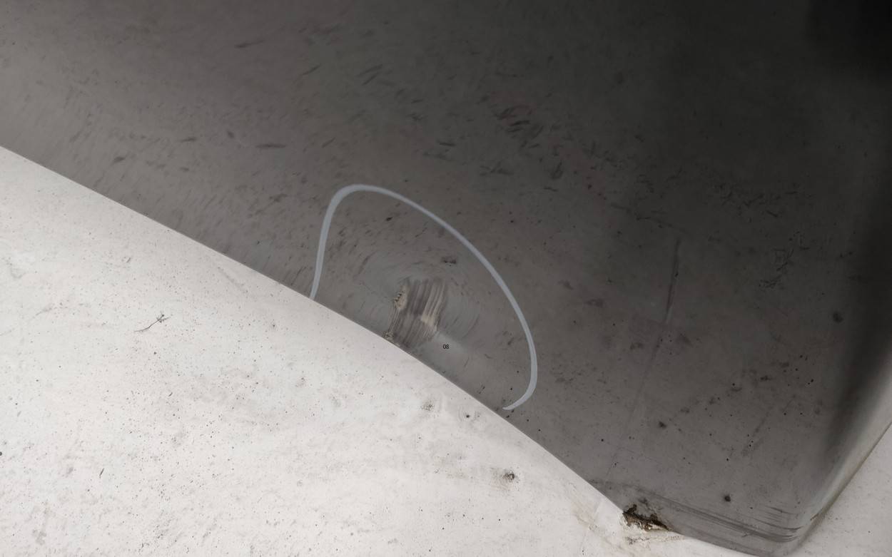 Состояние детали удовлетворительное. Белого цвета, скол ЛКП. Вмятина, дефект металла на фото. Потребуется ремонт