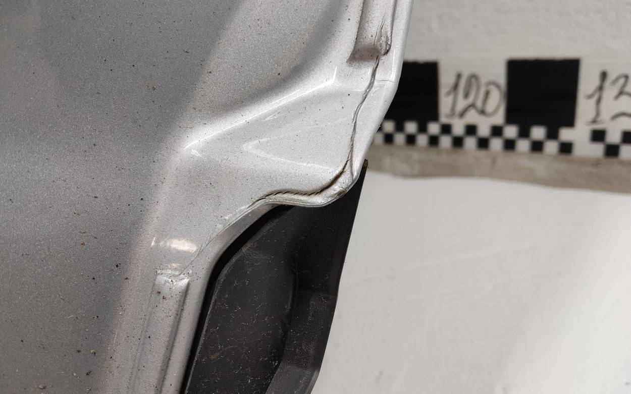 Состояние детали хорошее. Серебристого цвета, скол ЛКП. Вмятина. Потребуется небольшой ремонт