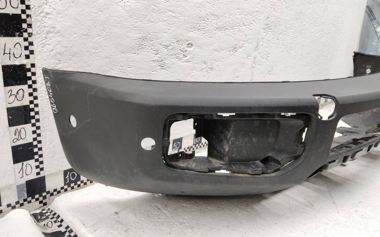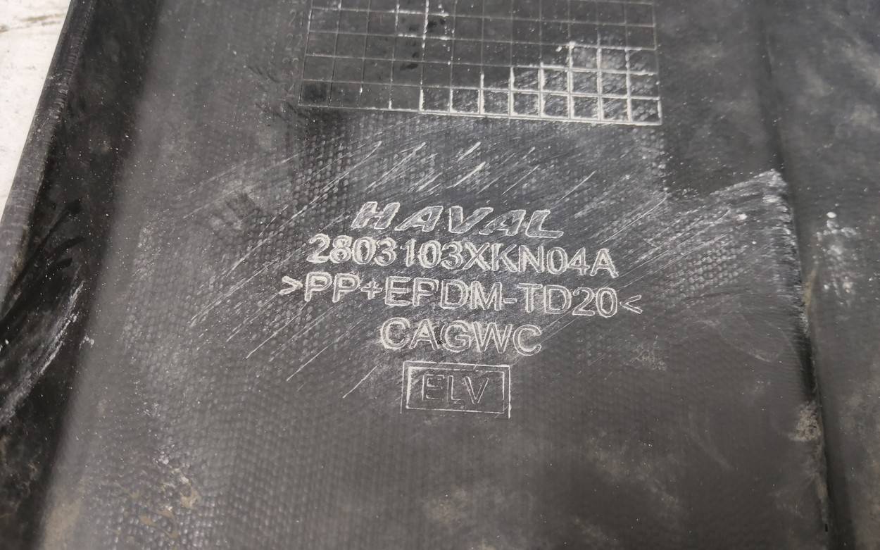 Состояние детали хорошее. Следы эксплуатации, потертости и царапинки текстуры. Повреждение текстуры. Вмятина. Все крепления целые. Бампер в сборе. Решетка бампера 2803107XKN52A. Накладка птф передняя левая 2803124XKN52A.. Вмятина в центральной нижней части. Повреждение текстуры с левой стороны.. Потребуется ремонт
