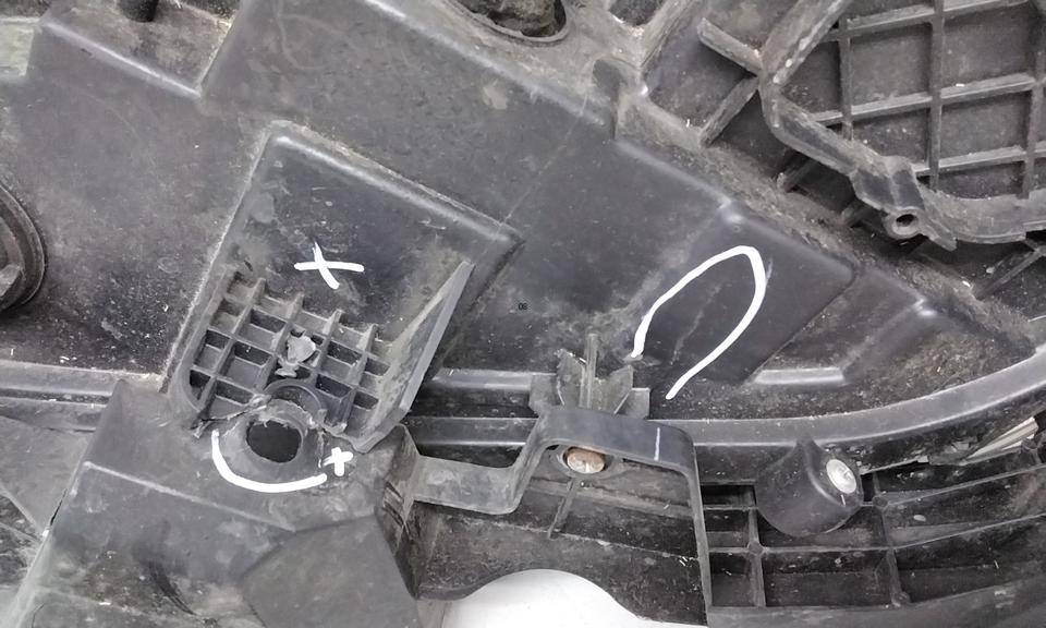 Состояние детали удовлетворительное. Следы эксплуатации на стекле. Сломано два верхних крепления, трещина на креплении под крылом. Потребуется ремонт