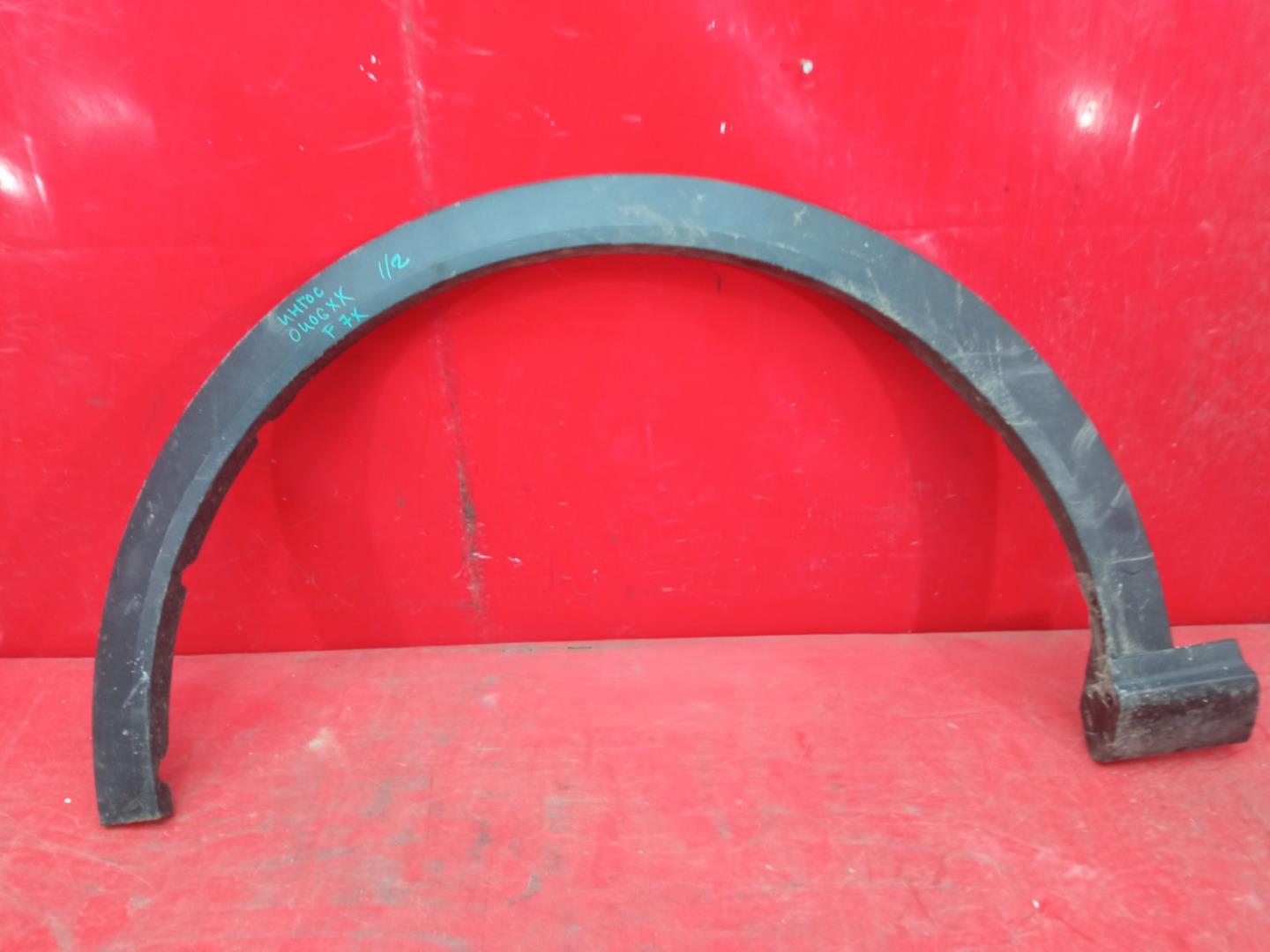 Состояние детали хорошее. Белого цвета, потёртости, царапины. Притёртость с вмятиной в передней части на арке крыла. Потребуется ремонт и покраска