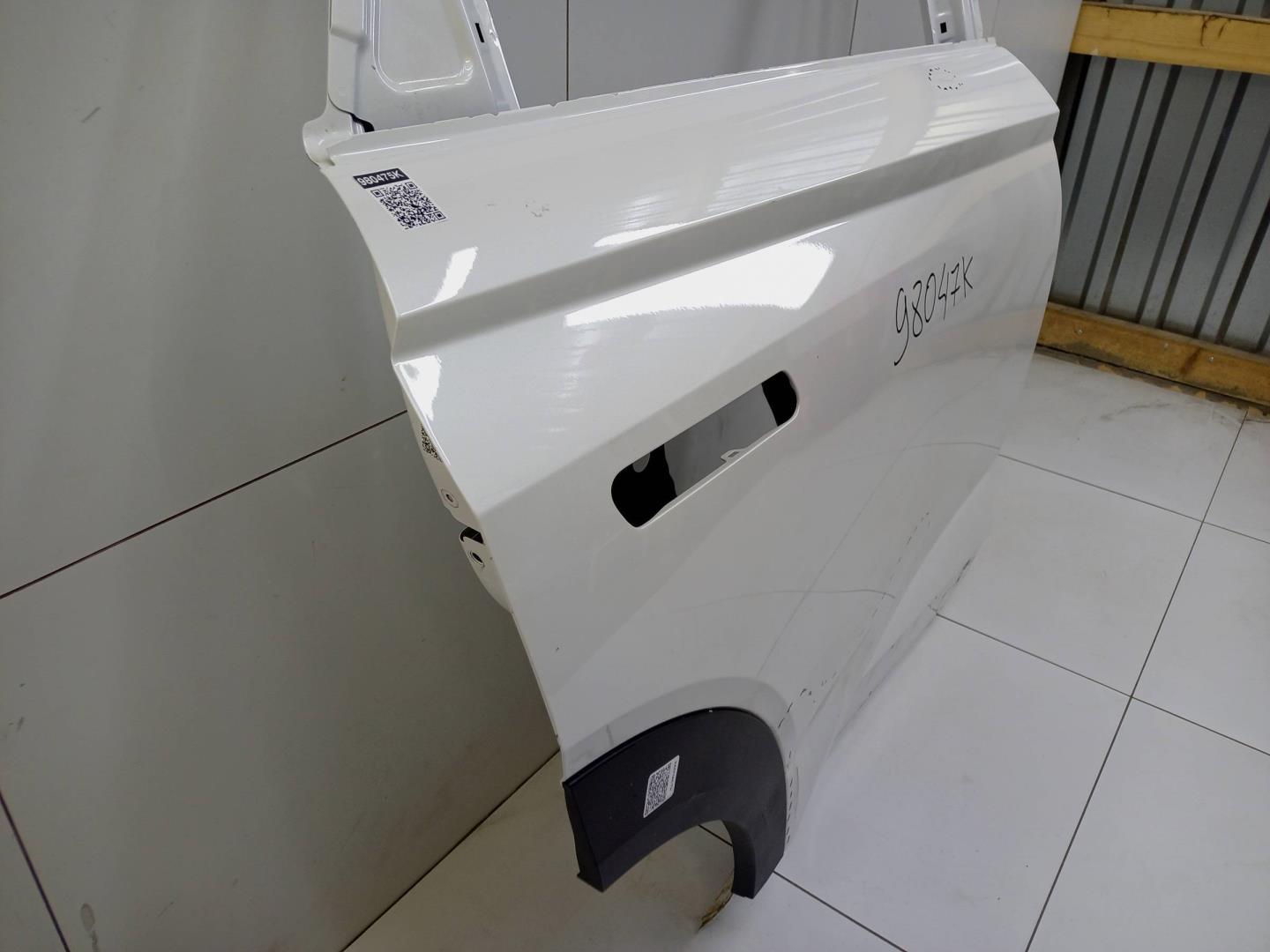 Состояние детали удовлетворительное. Белого цвета, скол ЛКП. Вмятины. Потребуется ремонт
