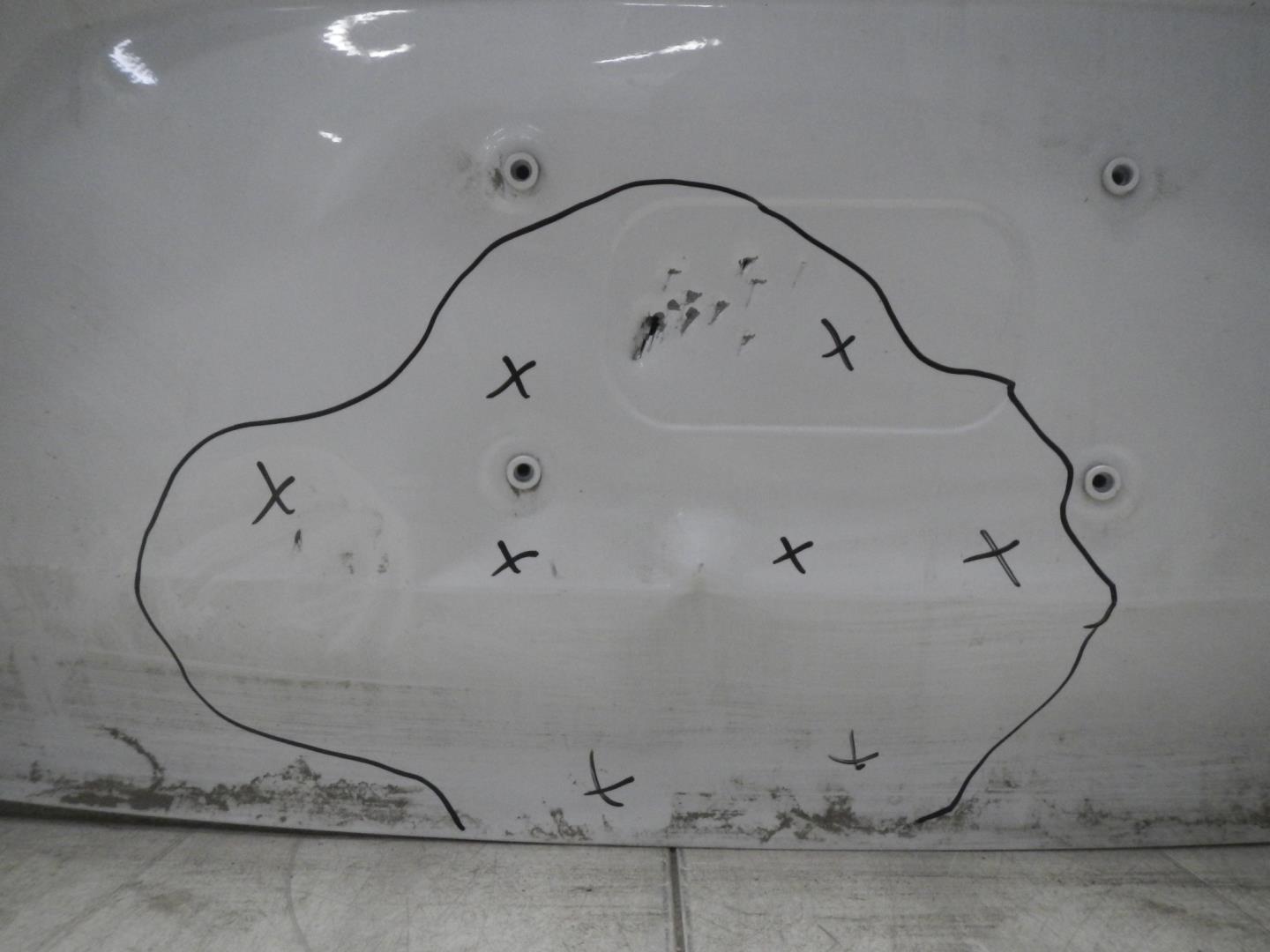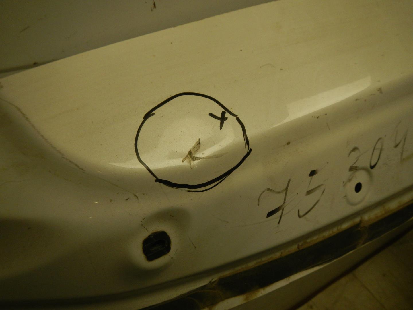 Состояние детали удовлетворительное. Белого цвета, скол ЛКП. Вмятины. Потребуется ремонт