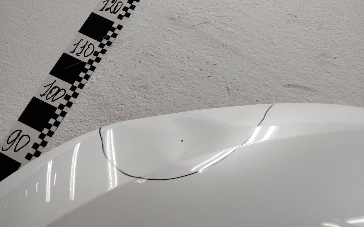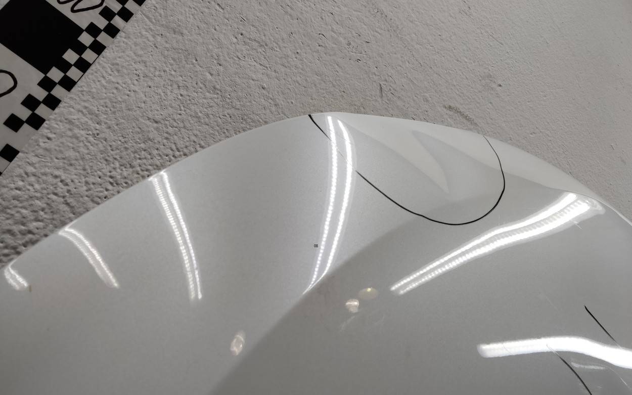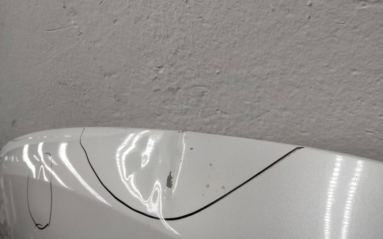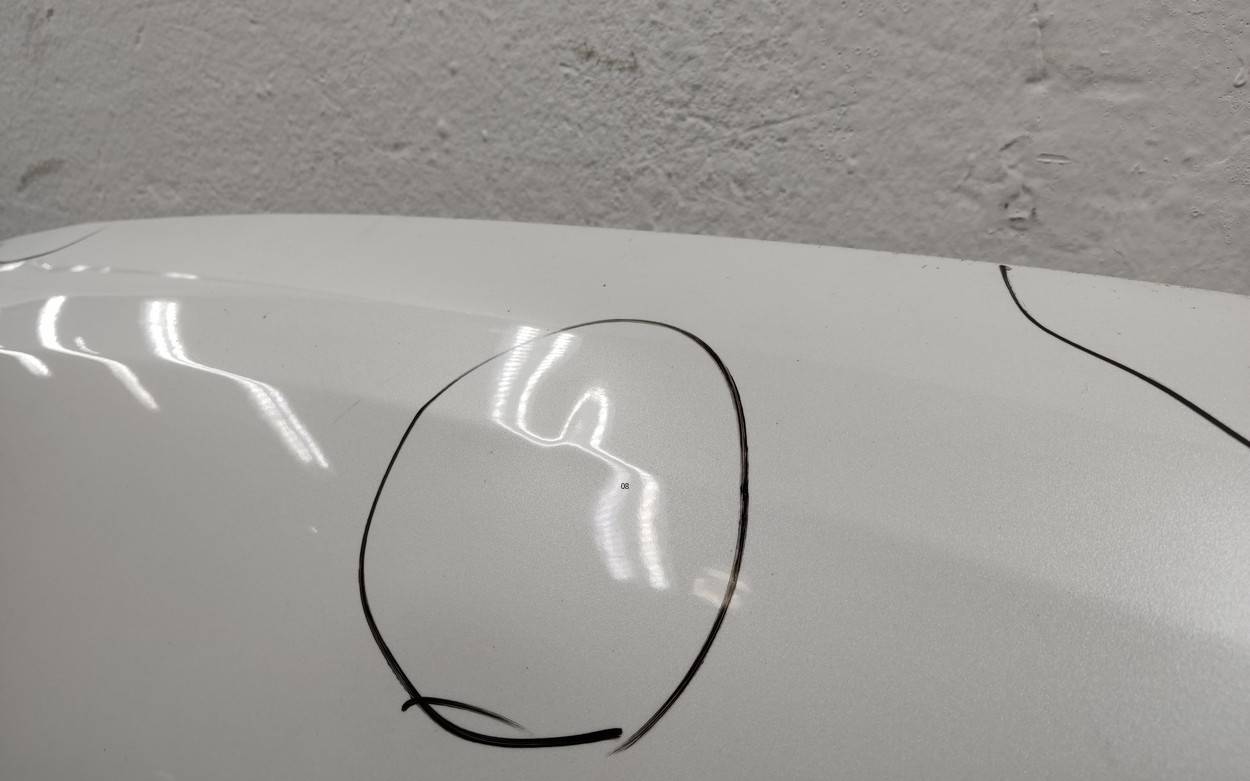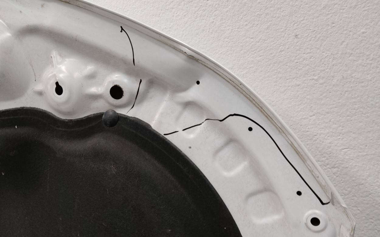 Состояние детали удовлетворительное. Белого цвета, скол ЛКП. С шумоизоляцией. Вмятины на внешней и внутренней поверхности. Потребуется ремонт