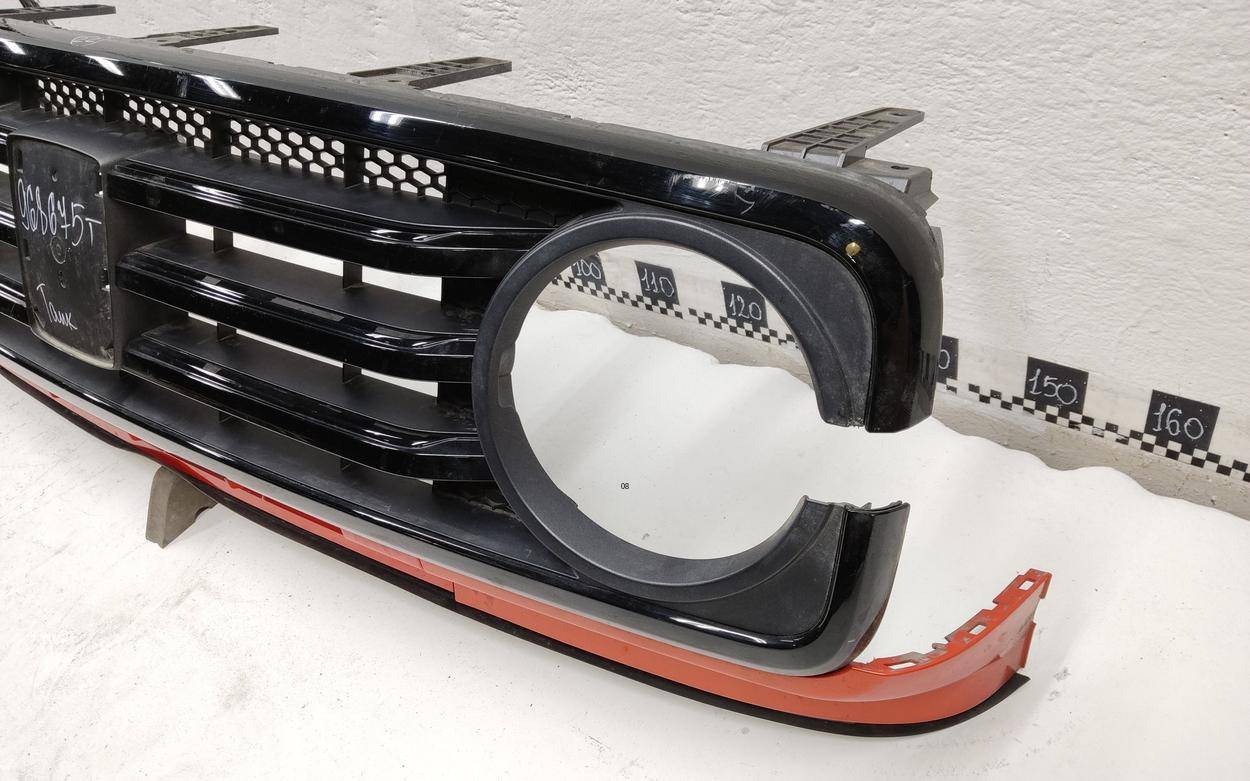 Состояние детали удовлетворительное. Следы эксплуатации, потертости, царапины текстуры. Сломано одно крепление решетки и три крепления эмблемы. Потребуется ремонт