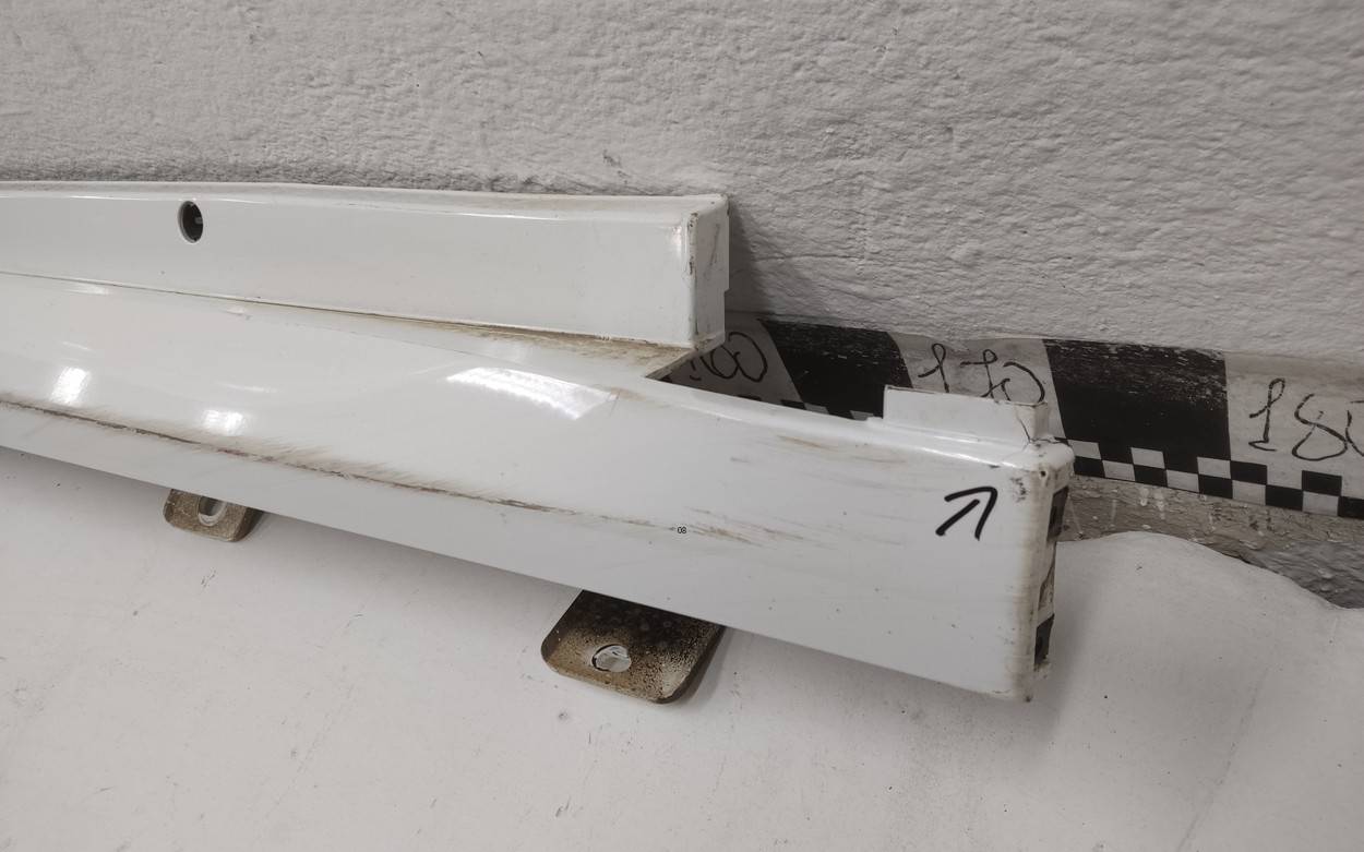 Состояние детали хорошее. Следы эксплуатации, потертости и царапины. Вмятина. Тычки. Загиб. Отрезная часть. Габариты вес 5.5кг., 140х19х189. Вмятина снизу по середине. Тычки в верхней части слева и справа. Загнут пассажирский порог.. Потребуется ремонт.