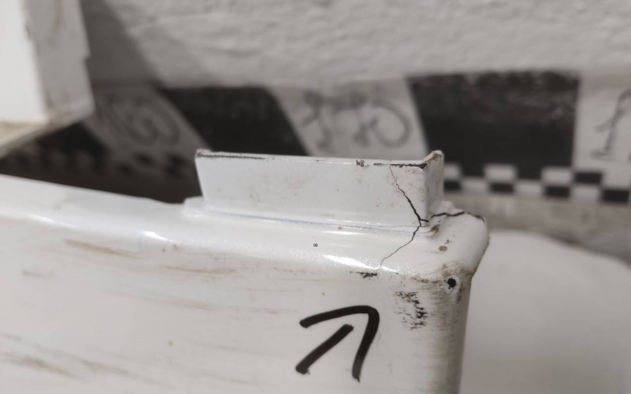 Состояние детали хорошее. Белого цвета (перламутр), трещинка, царапины. Крепления целые. Может потребоваться незначительный ремонт