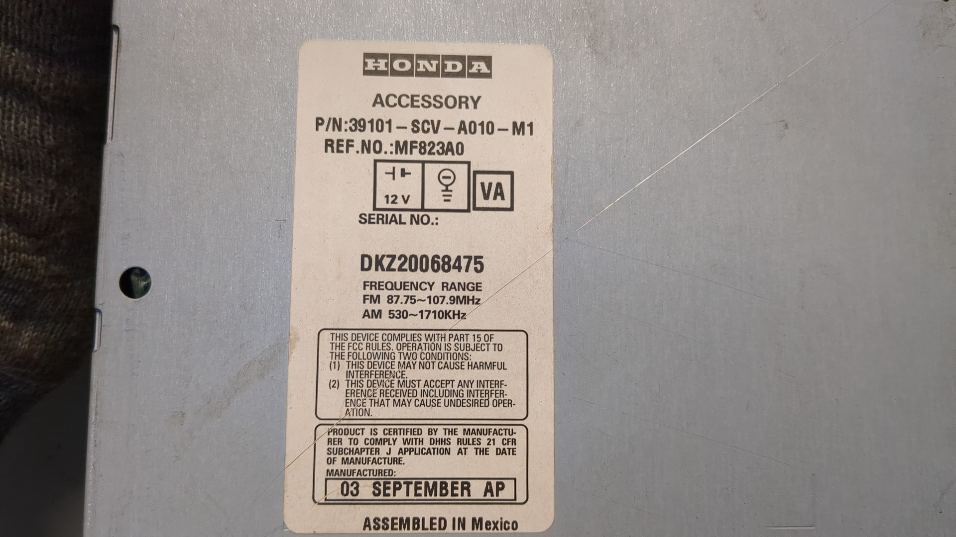 - Номер детали 39120SCVA200M1