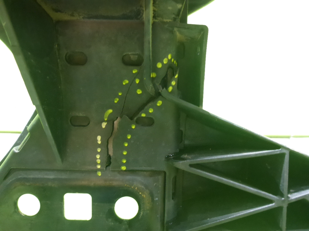 Состояние детали удовлетворительное. Следы эксплуатации, потертости и царапинки текстуры. Сломано центральное крепление, трещины и отсутствуют фрагменты пластика. Потребуется ремонт