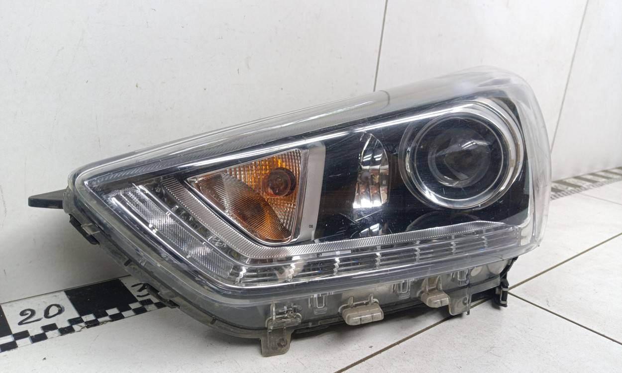 Состояние детали удовлетворительное. Следы эксплуатации на стекле, потертости, царапины, сломано одно крепление бампера в нижней невидимой части. Сломано одно крепление, трещины корпуса. Потребуется ремонт Фара левая для Hyundai Creta (GS) 2015-2021