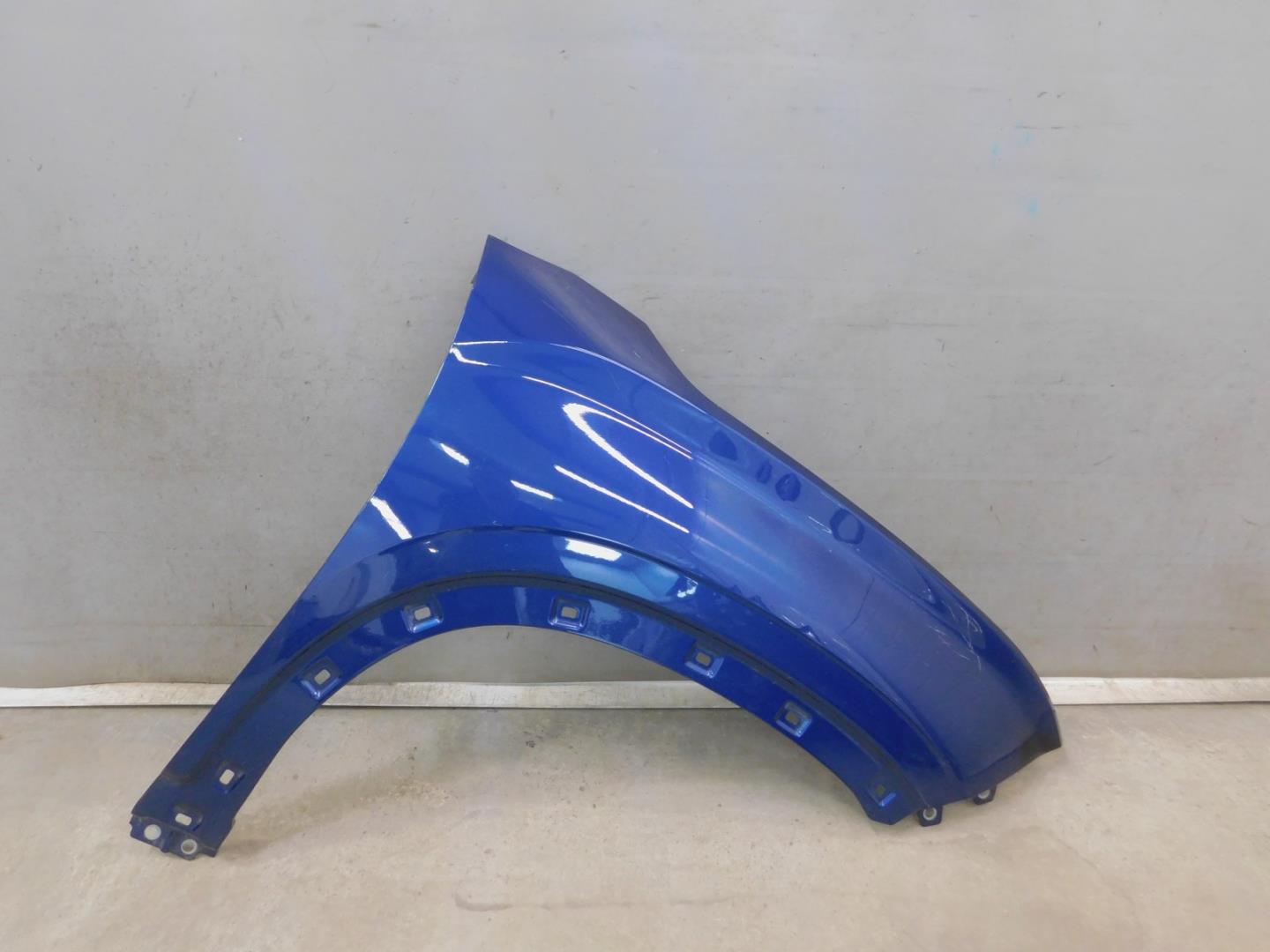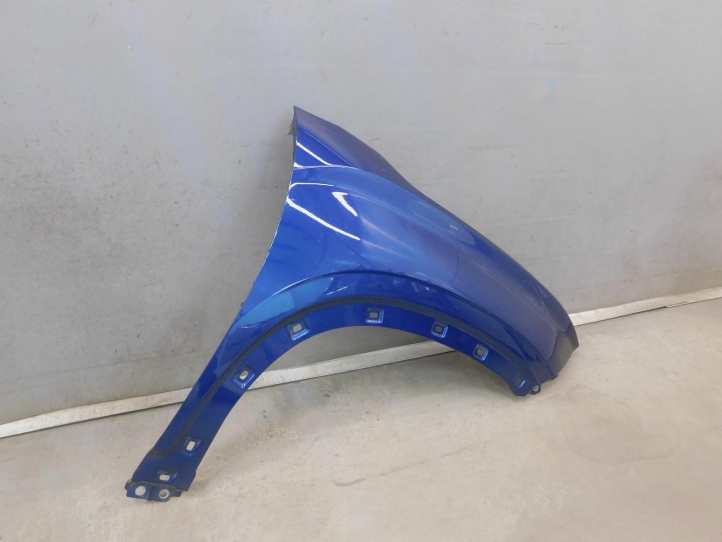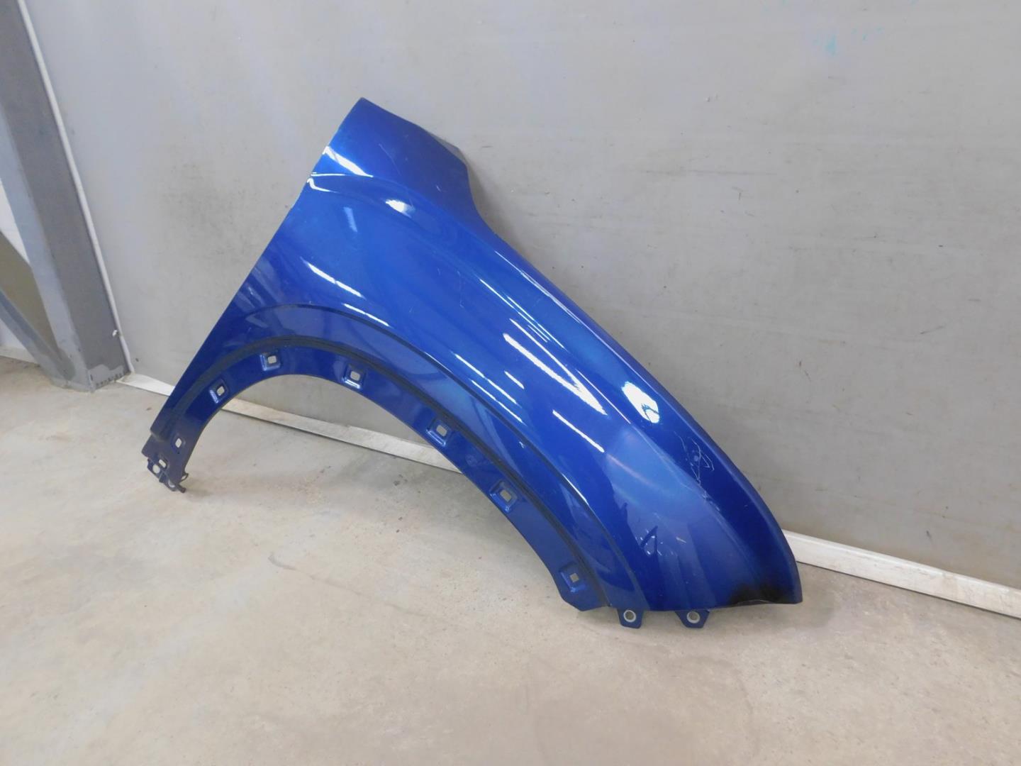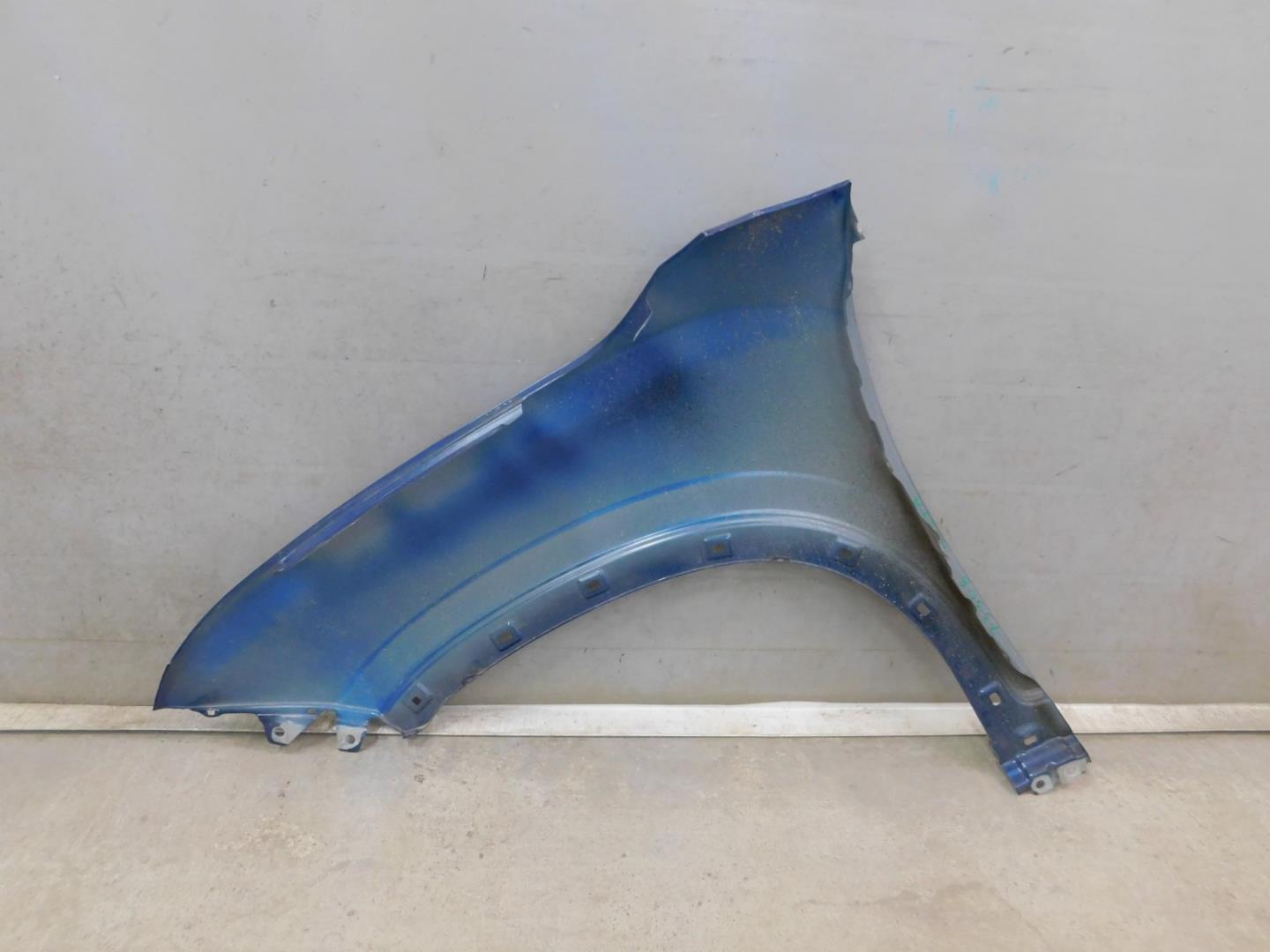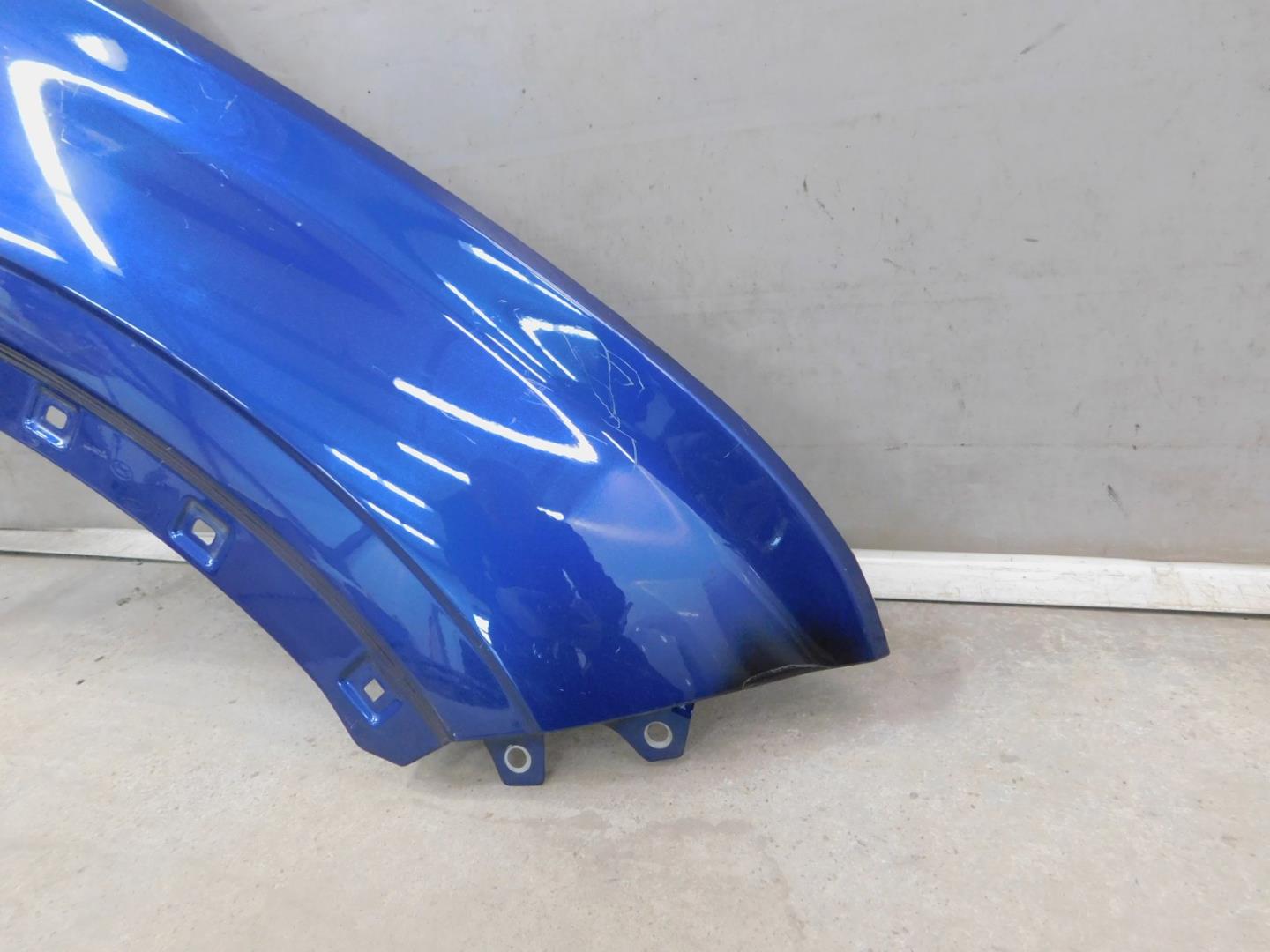 Состояние детали хорошее. Синего цвета, потертости, царапинки, в сборе с юбкой и правой рамкой ПТФ. Притертость с правой стороны, дефект и деформация пластика, крепления целые. Потребуется ремонт и покраска