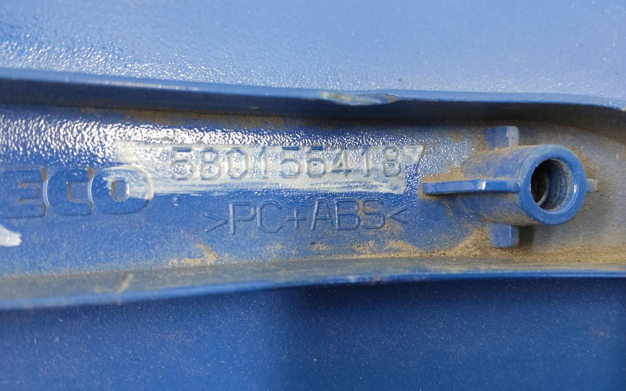 Состояние детали хорошее. Синего цвета, царапины. Отсутствует одно крепление и направляющая. Потребуется незначительный ремонт Дефлектор грязевой левый для Iveco St07>