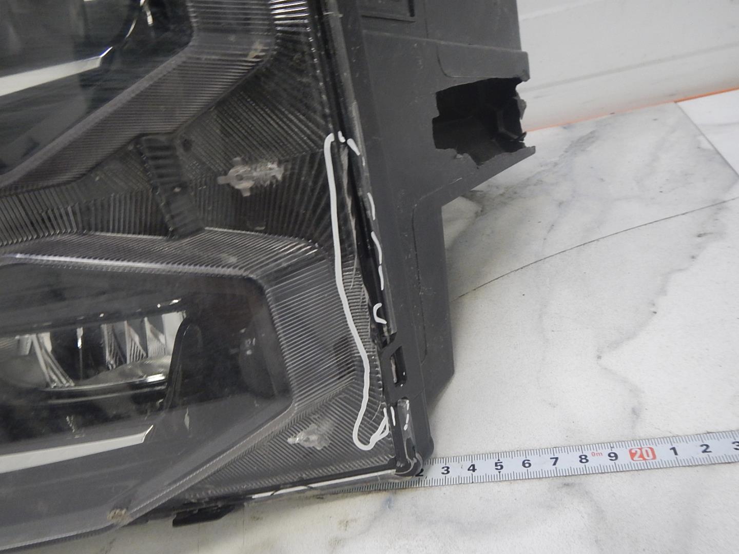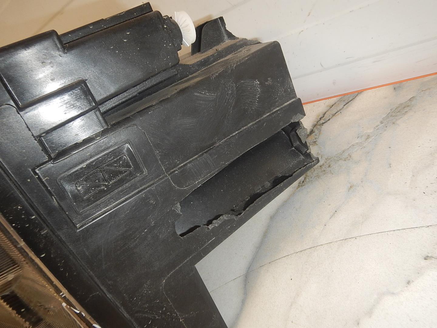 Состояние детали удовлетворительное. Следы эксплуатации, потертости и царапины. Разбито стекло. Тычок. Трещина. Все крепления целые.. Разбитое стекло в левой нижней части. Трещина в левой нижней части корпуса. Тычок в левой нижней части.. Потребуется ремонт