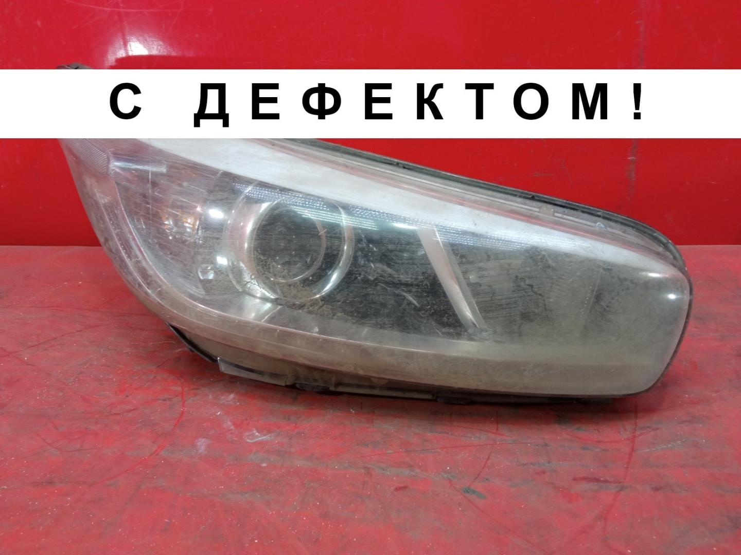 Состояние детали плохое. Трещина на стекле со стороны решётки радиатора, отсутствуют фрагменты пластика стекла. Трещины корпуса отсутствуют фрагменты, сломаны крепления, целые крепления снизу и сверху со стороны крыла. На запчасти без гарантии на возврат