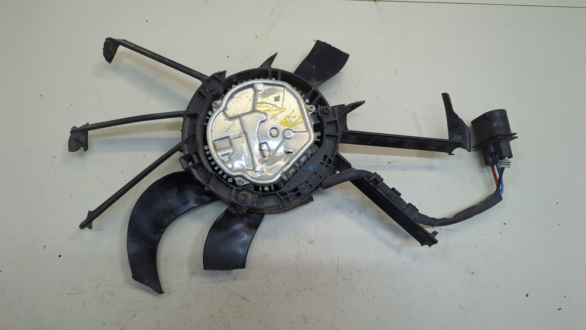Состояние детали хорошее. Белого цвета, потёртости, царапины. Небольшие трещинки на плоскости где площадка номерного знака , дефект 1 не основного крепления, основные крепления целые. Потребуется ремонт и покраска