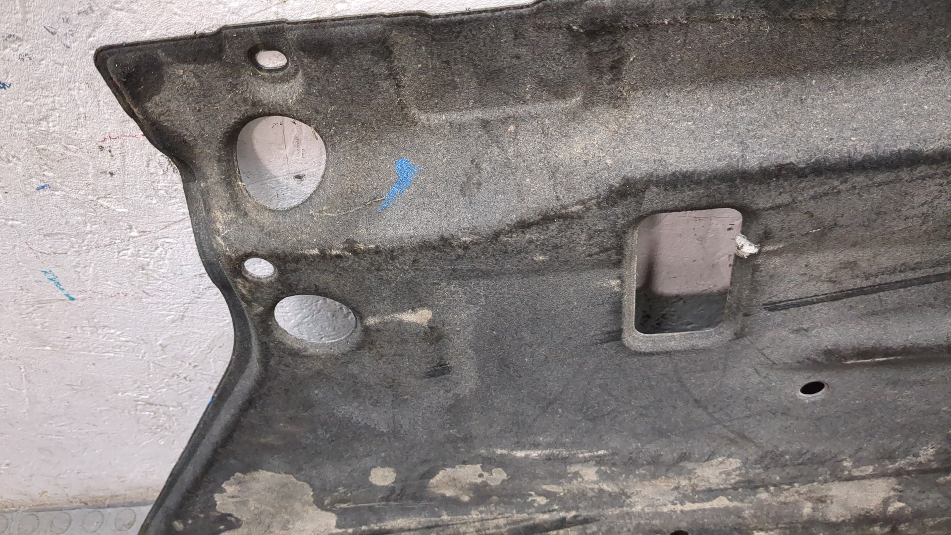 Состояние детали хорошее. Белого цвета, потёртости, царапины. Небольшие трещинки на плоскости где площадка номерного знака , дефект 1 не основного крепления, основные крепления целые. Потребуется ремонт и покраска