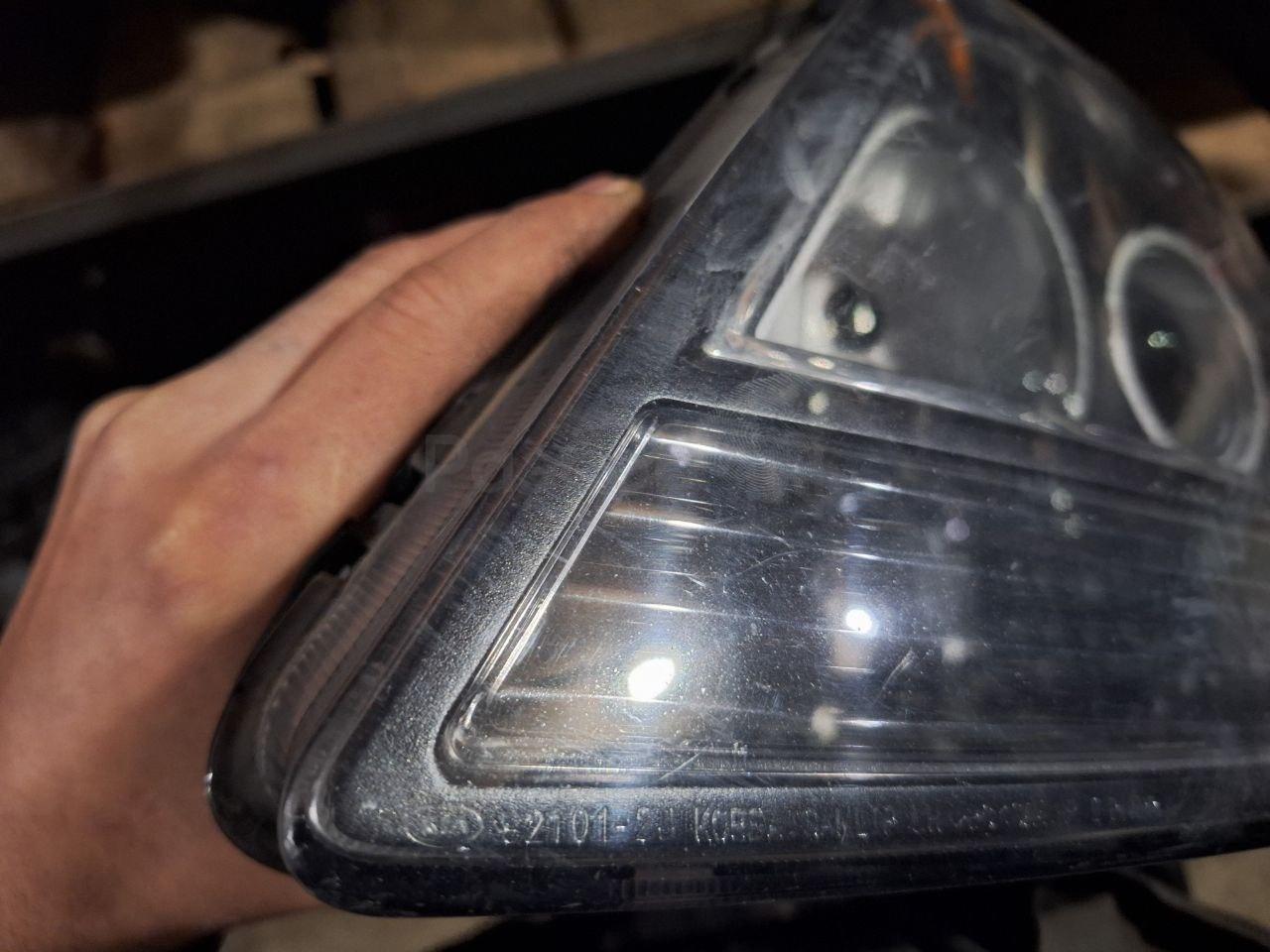 Состояние детали хорошее. Стекло в пленке. Сломано одно крепление со стороны решетки радиатора, корпус целый. Потребуется ремонт крепления