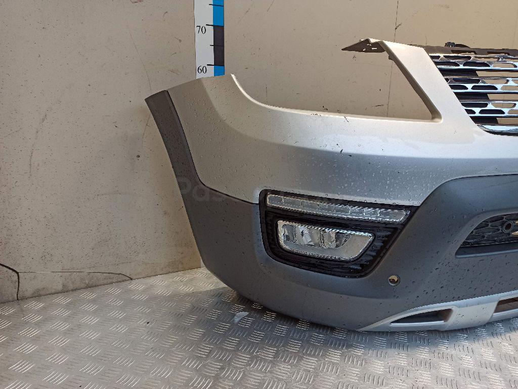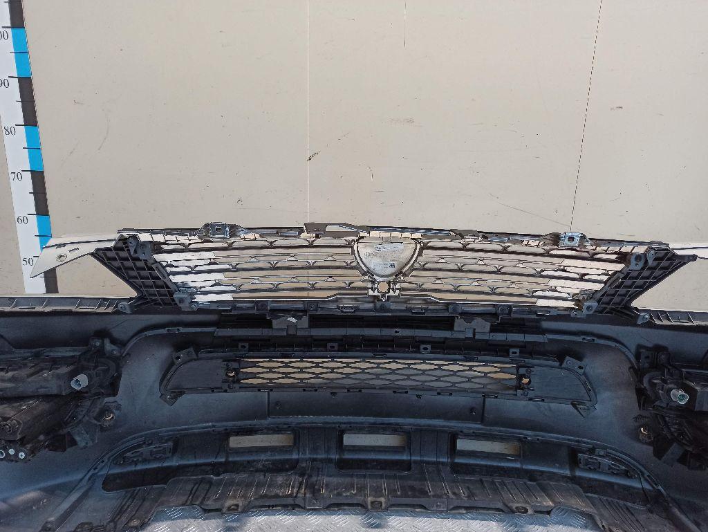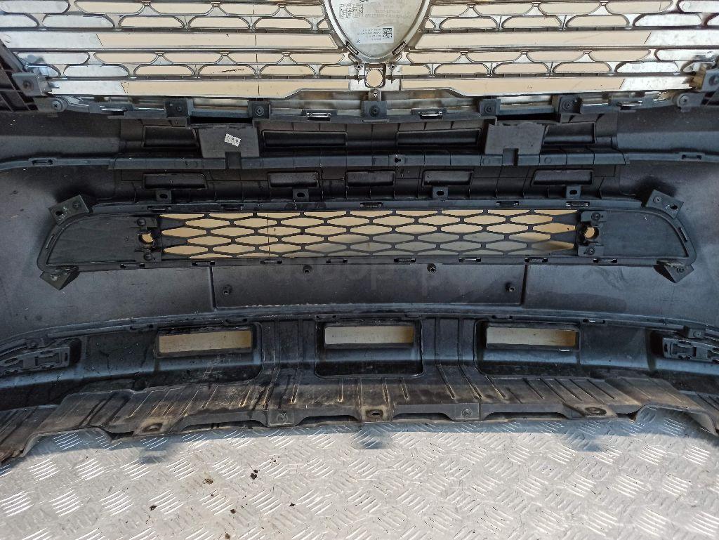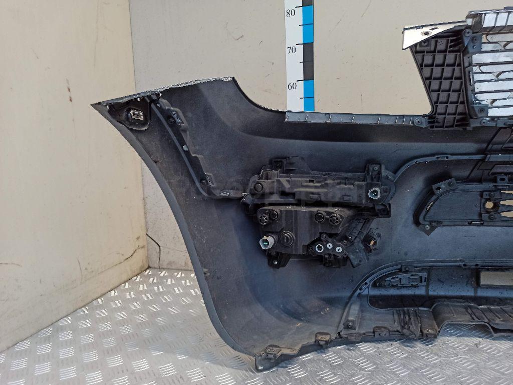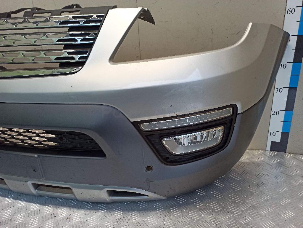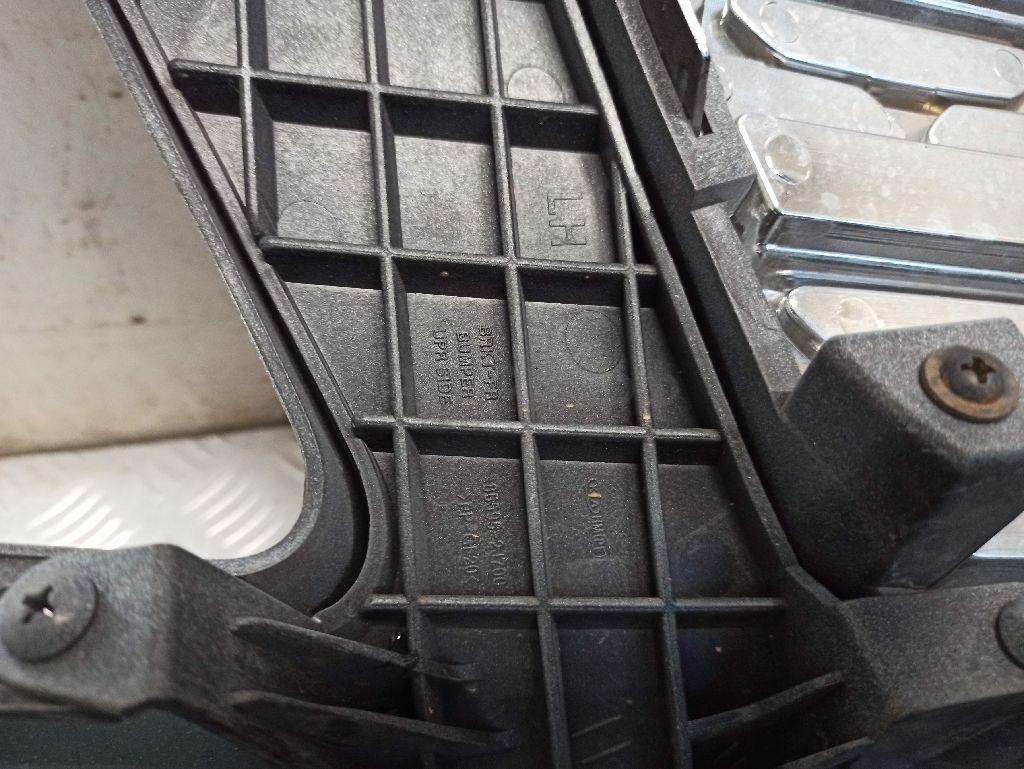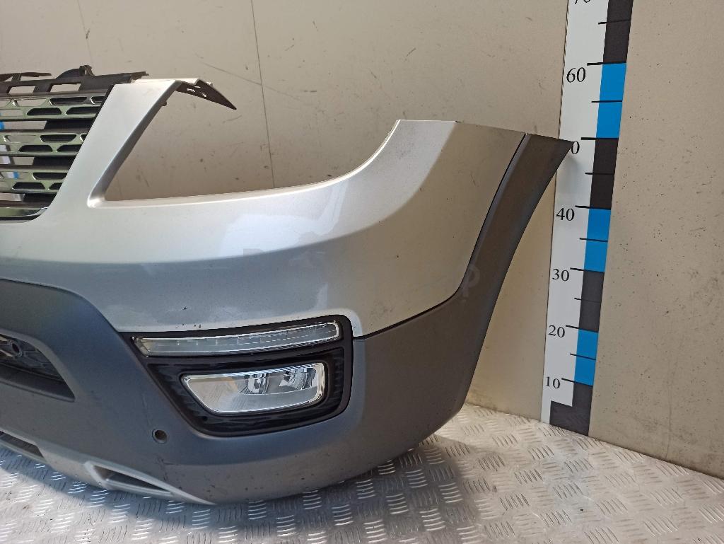 Состояние детали хорошее. Серого цвета под парктроники, вмятина, царапинки. Отсутствуют три крепления под левую ПТФ и одно под решетку. Потребуется ремонт