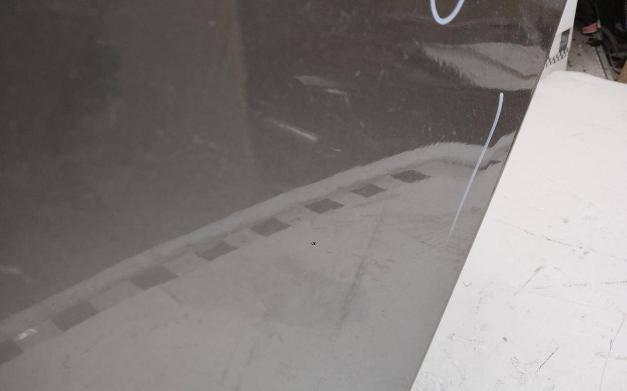 Состояние детали удовлетворительное. Серого цвета, потёртости, царапины. Притертость на плоскости и задней кромке двери снизу. Потребуется ремонт и покраска